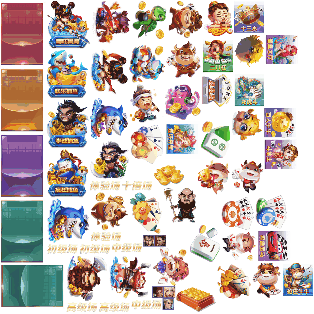 (展示素材已压缩)24棋牌资源,包含十几种游戏素材、捕鱼序列帧,游戏整包资源。展示部分资源,一下素材皆为原素材大小的50%~