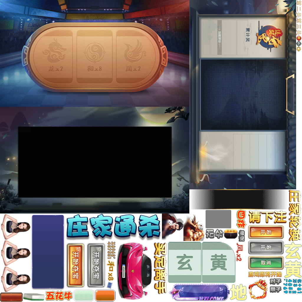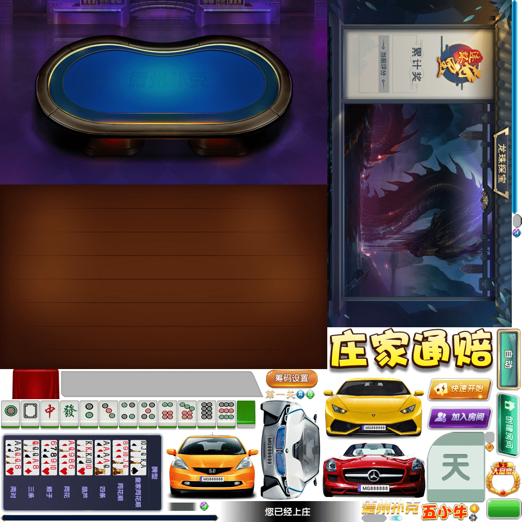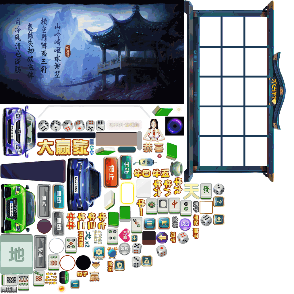 (展示素材已压缩)棋牌类资源,整包资源,包含多种游戏。音乐音效资源。展示图片为原图大小的50%(有压缩)。展示只是部分文件并不是全部文件。