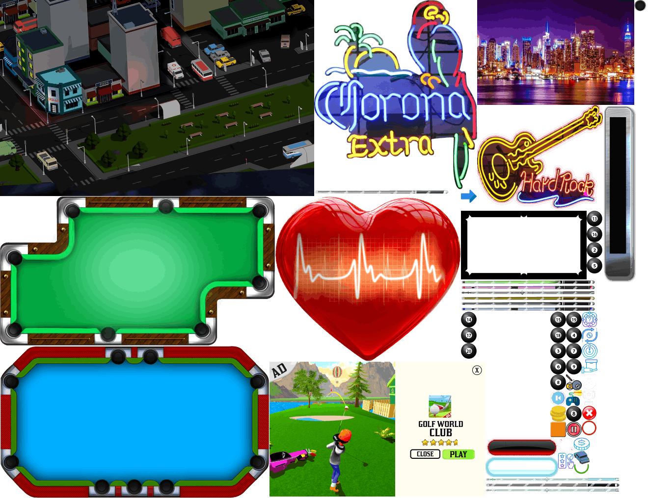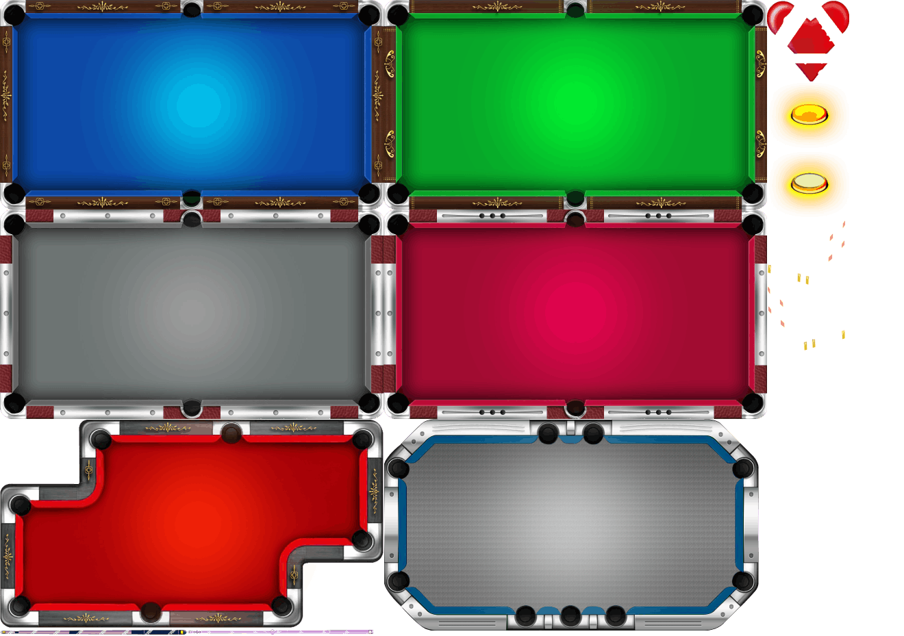 (展示素材已压缩)展示UI为源文件大小的50%(仅展示部分)!整包素材,包含音乐音效等素材~ 异型台球素材