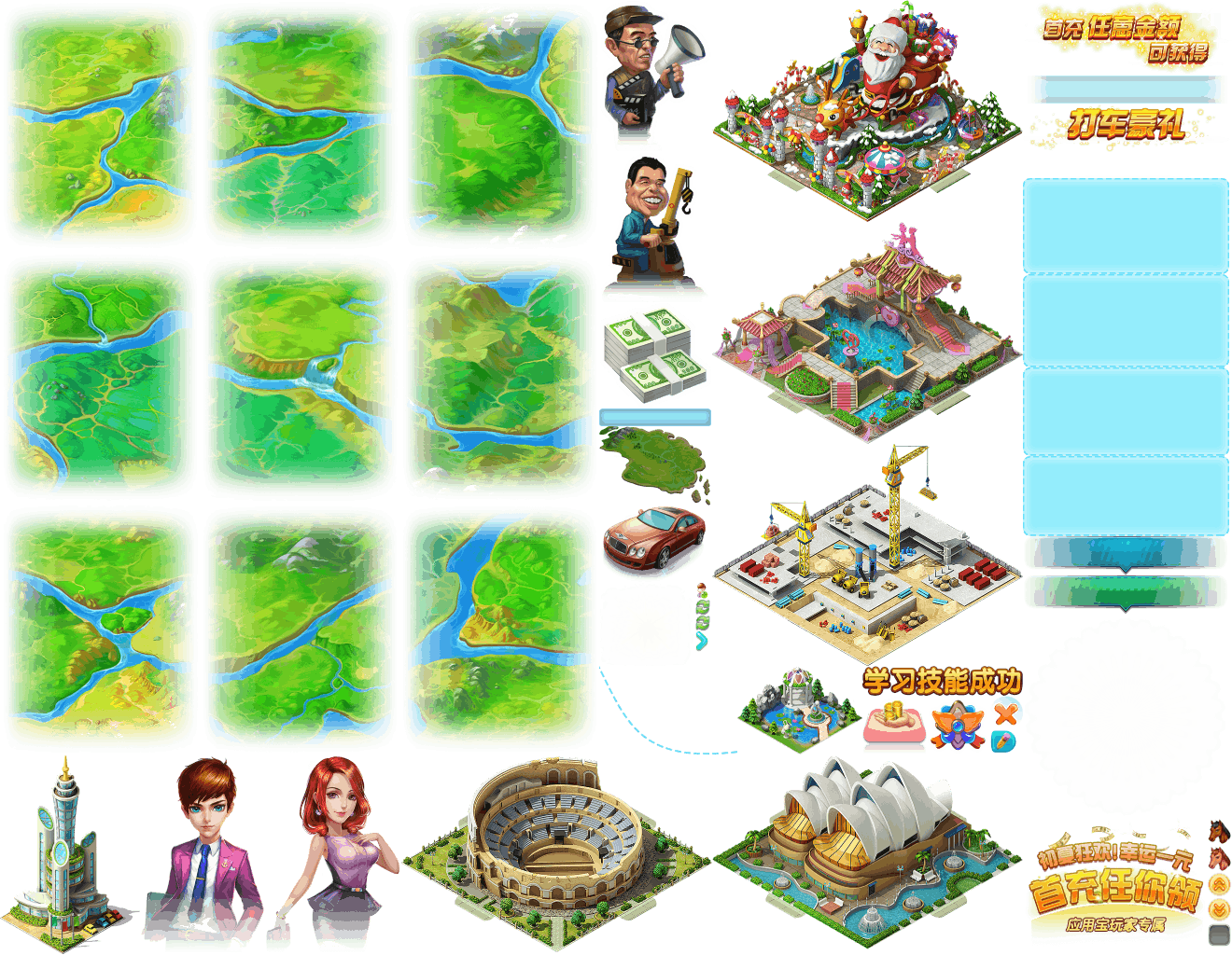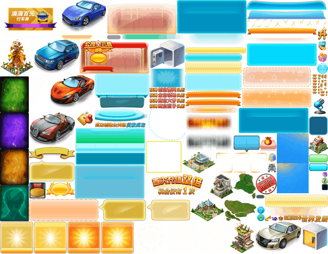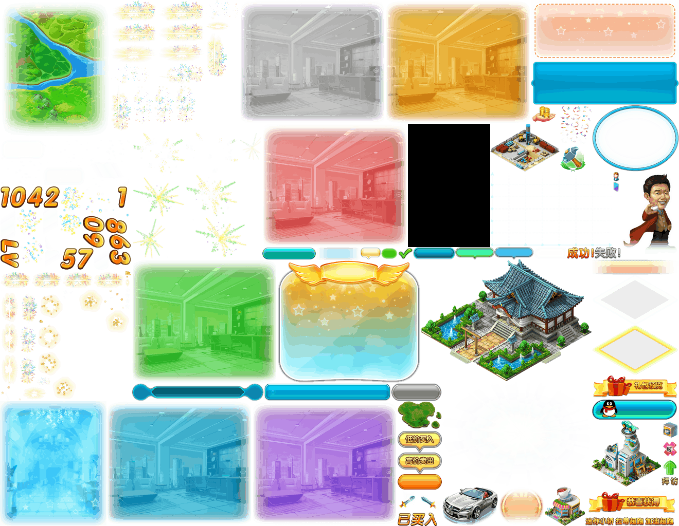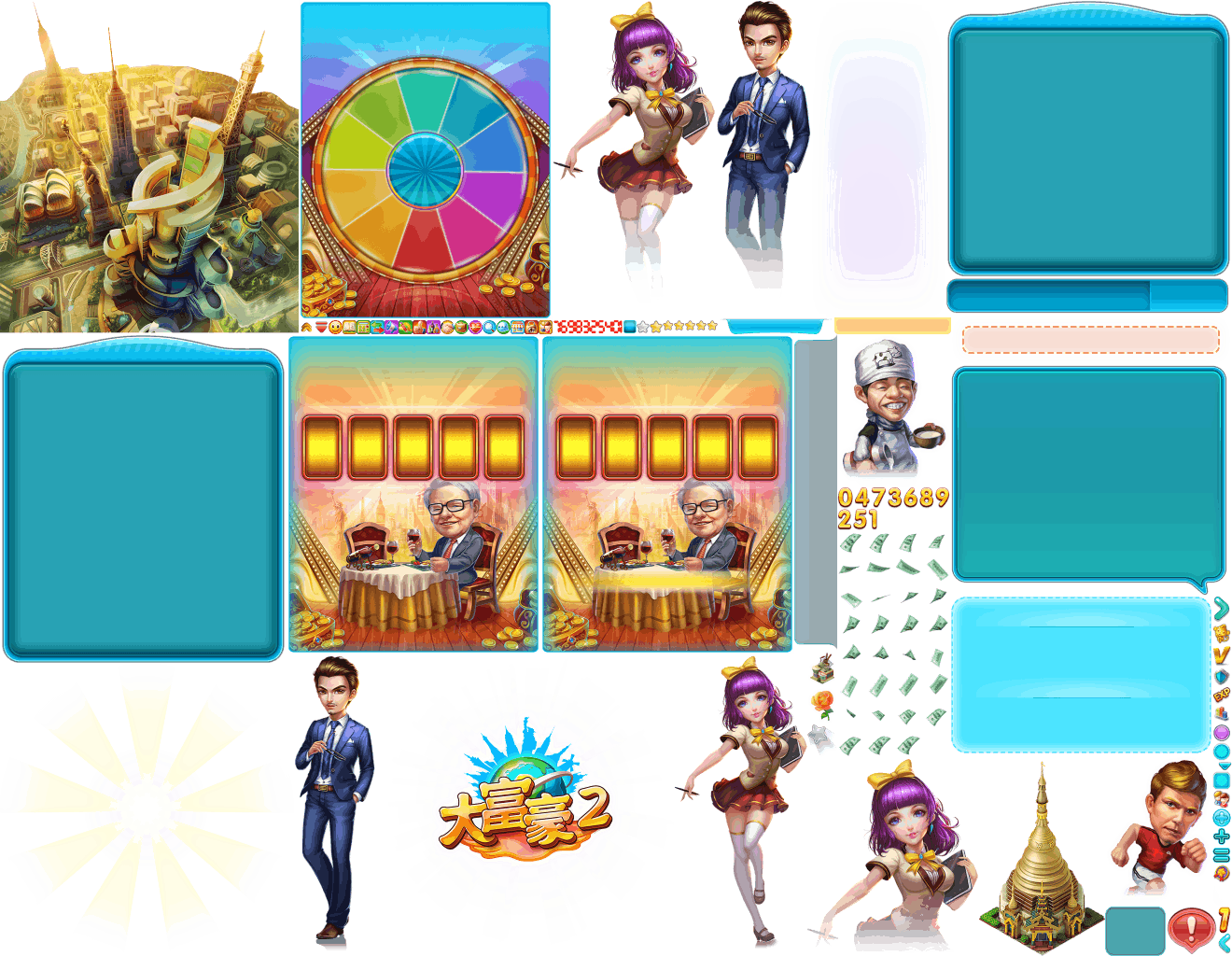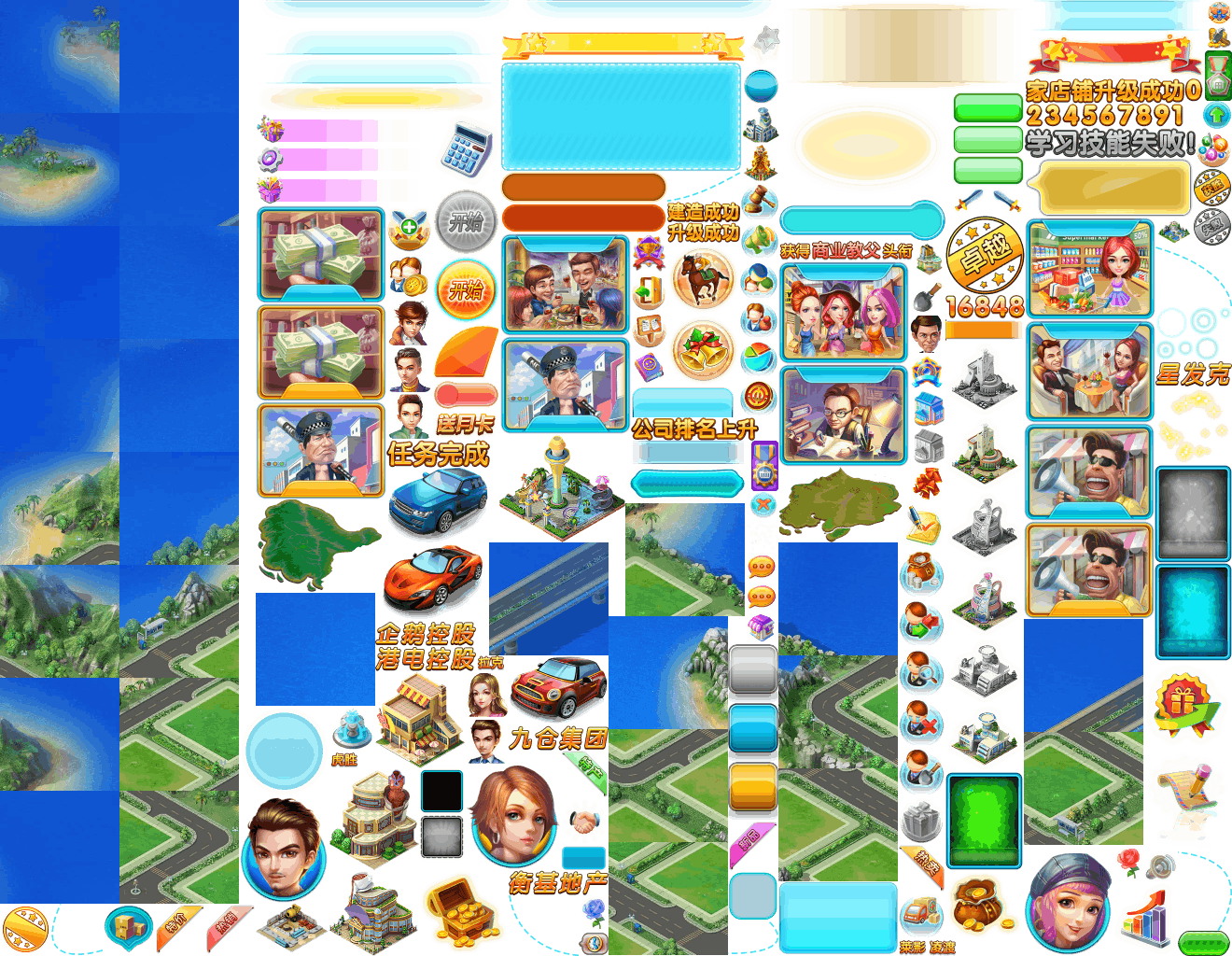 (展示素材已压缩)展示UI为源文件大小的50%(仅展示部分)!整包素材,包含音乐音效等素材~ 大富翁游戏素材