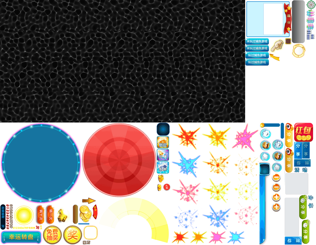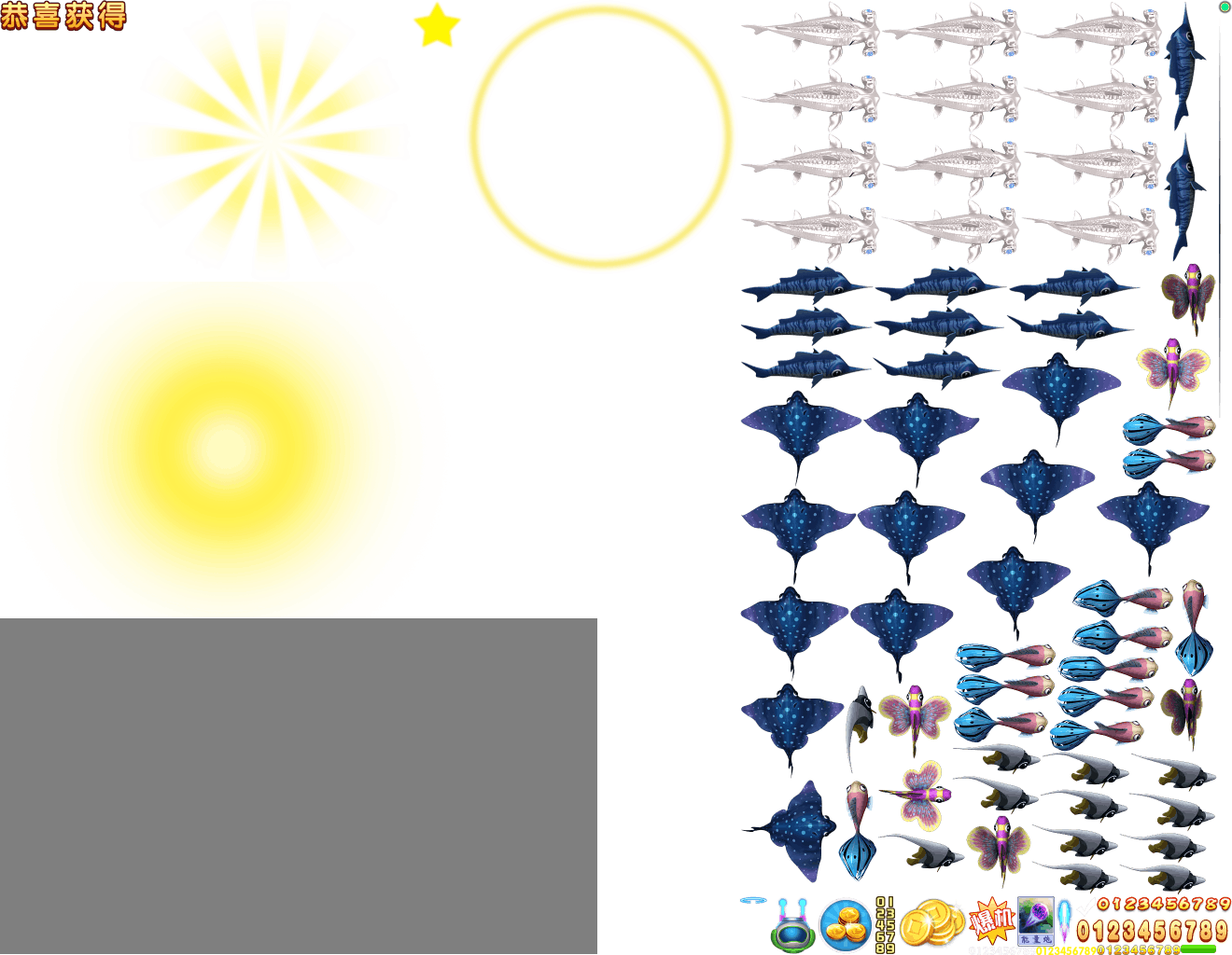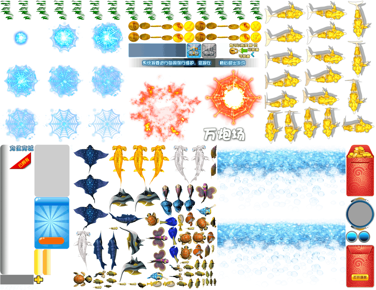 (展示素材已压缩)展示UI为源文件大小的50%(仅展示部分)!整包素材,包含音乐音效等素材~大家乐捕鱼素材