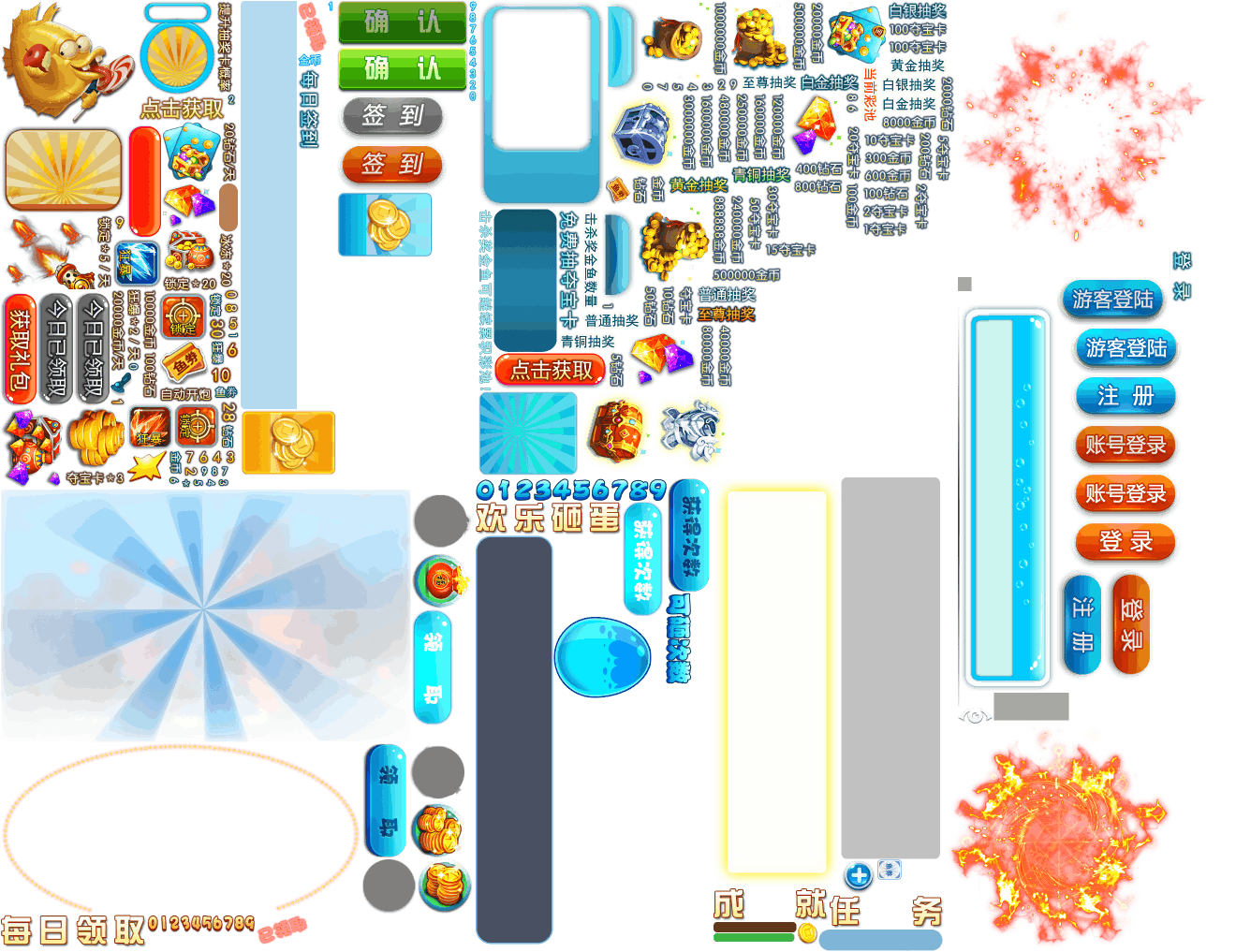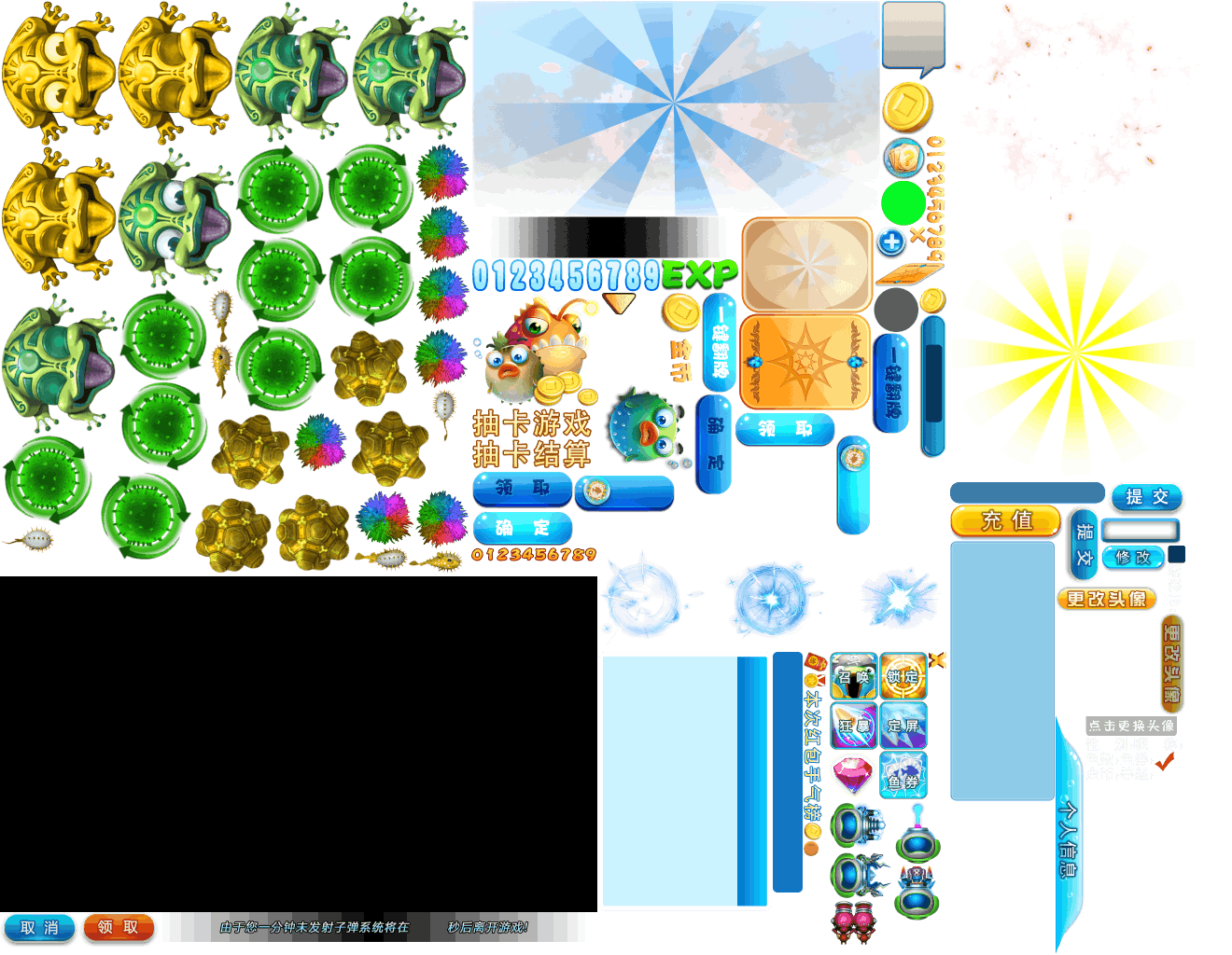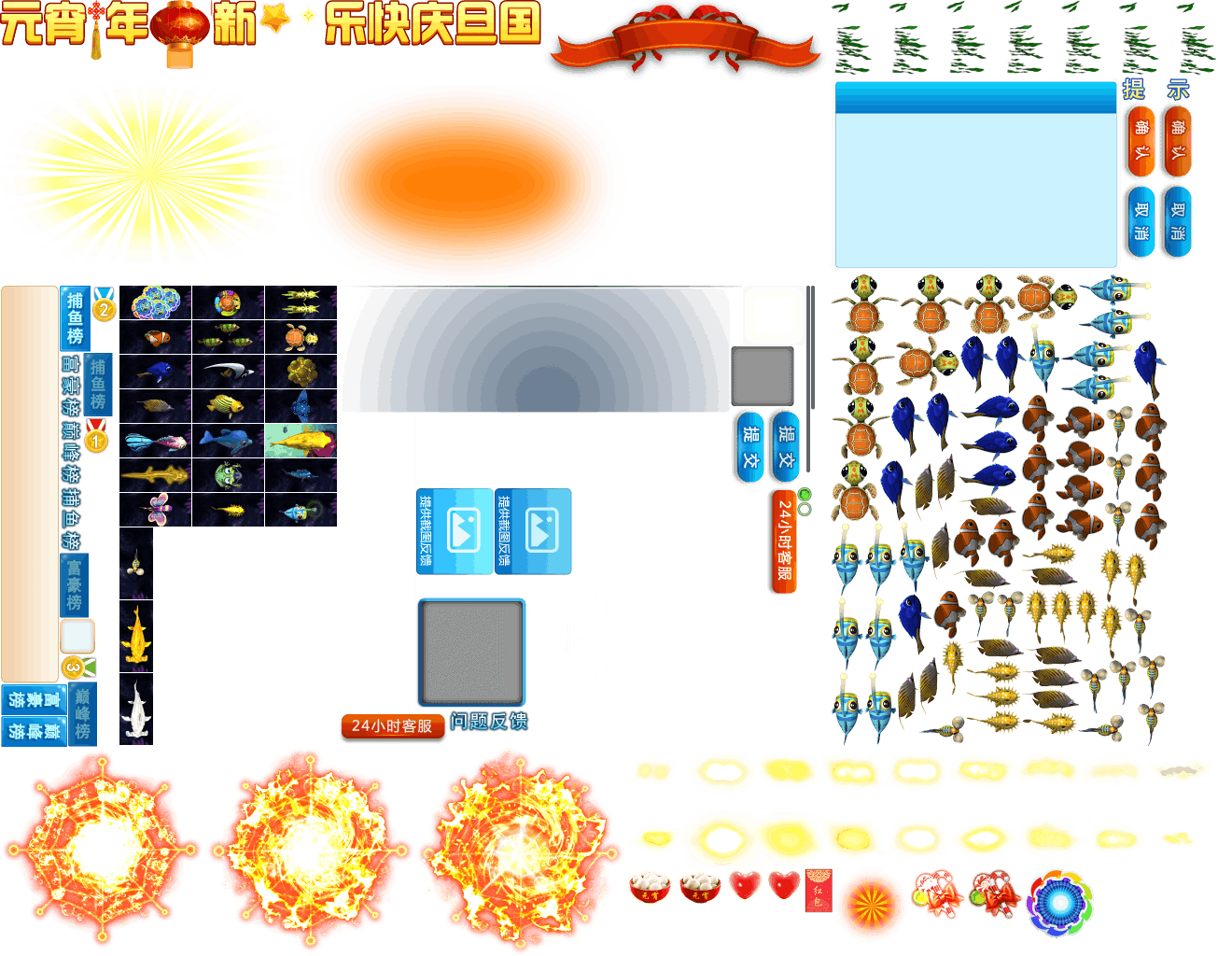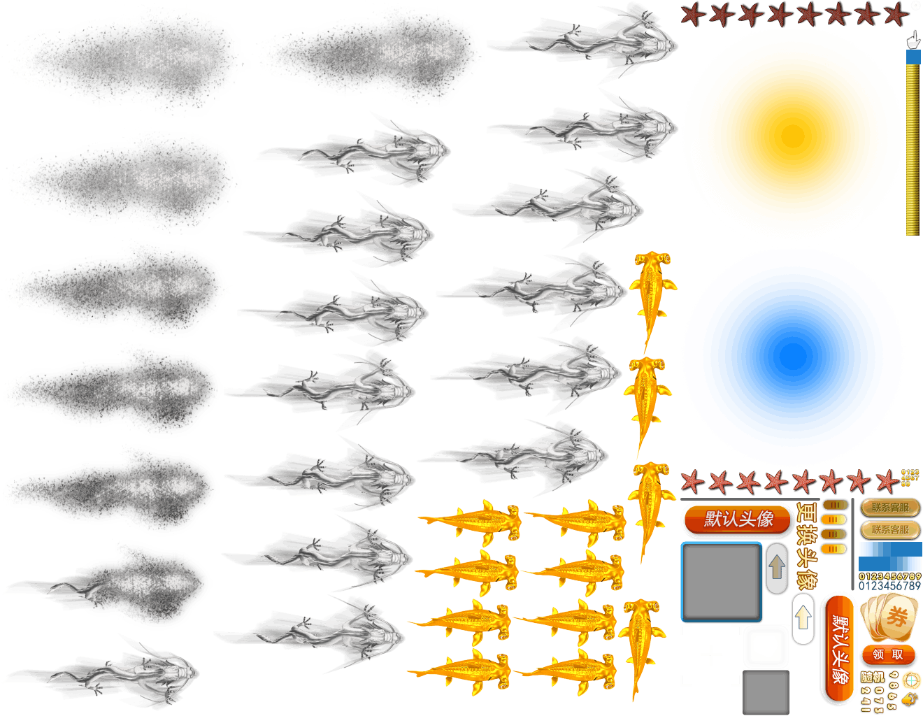 (展示素材已压缩)展示UI为源文件大小的50%(仅展示部分)!整包素材,包含音乐音效等素材~大家乐捕鱼素材
