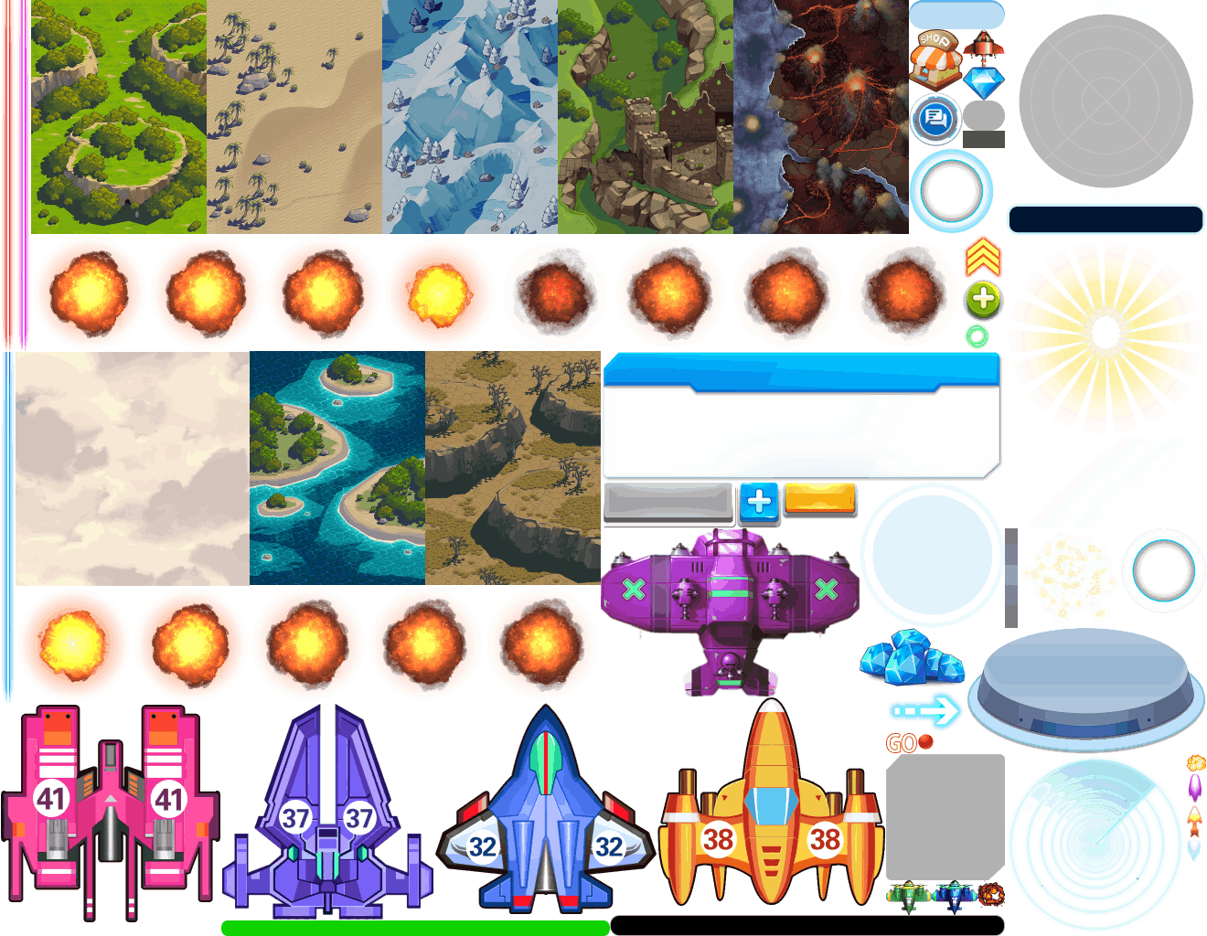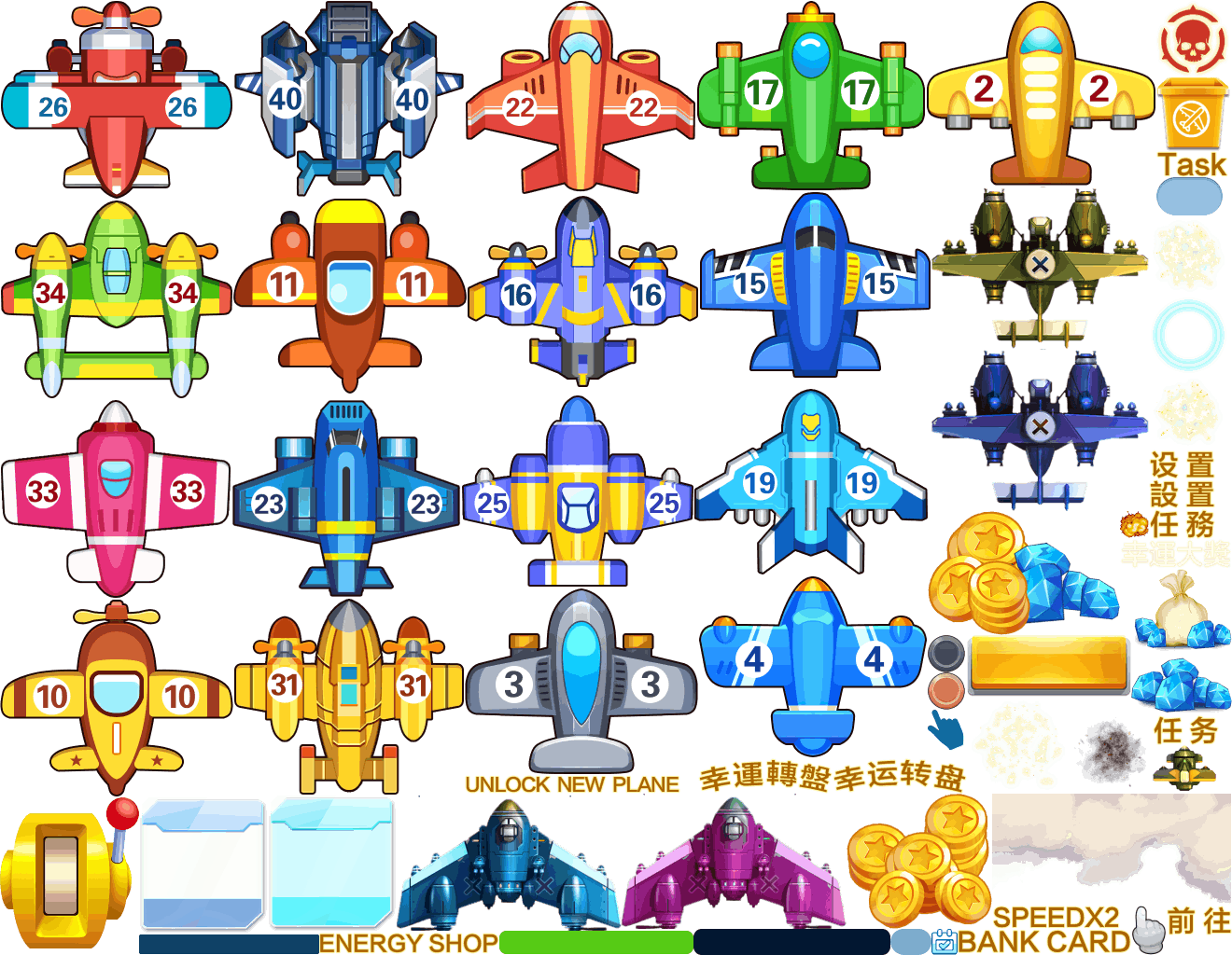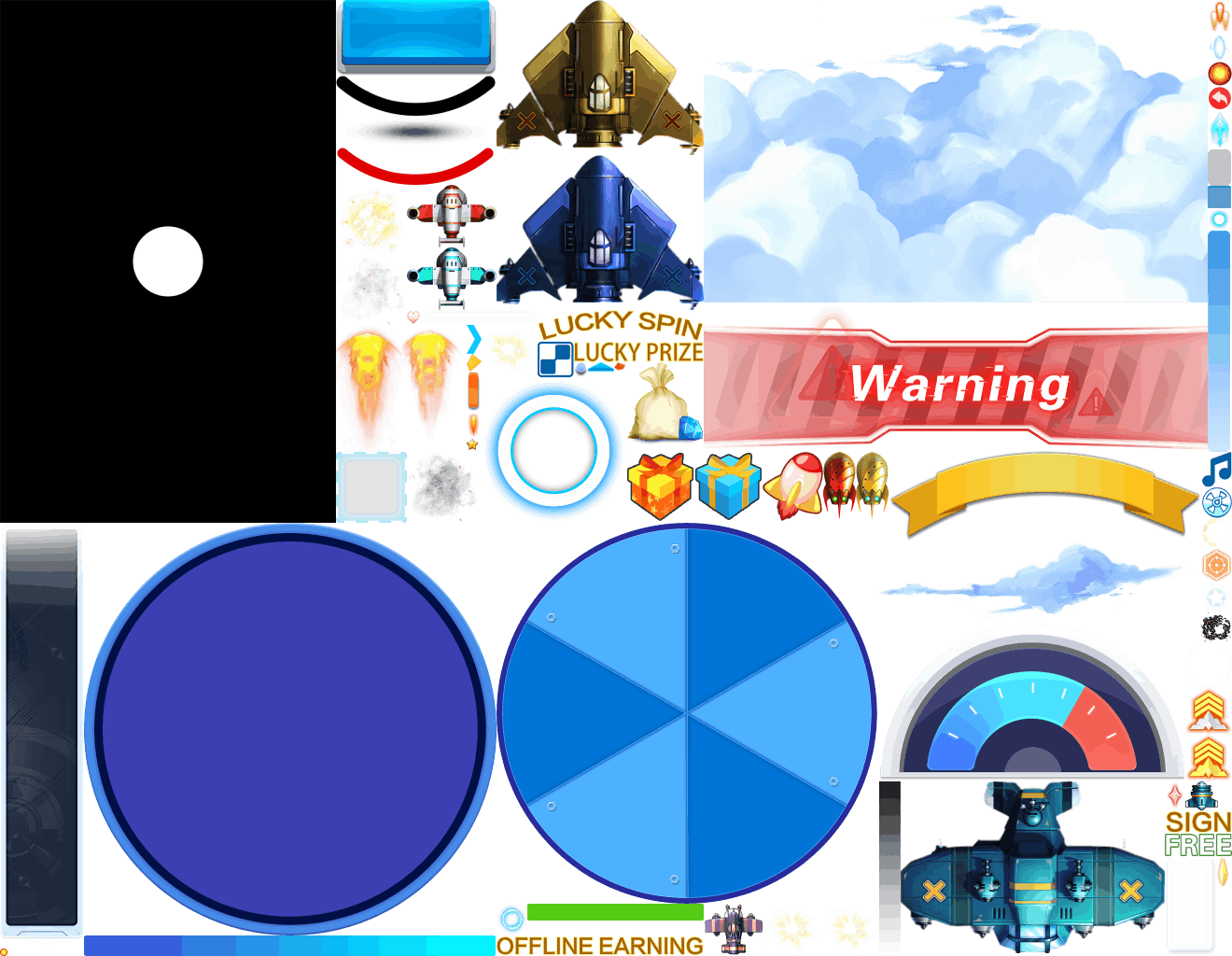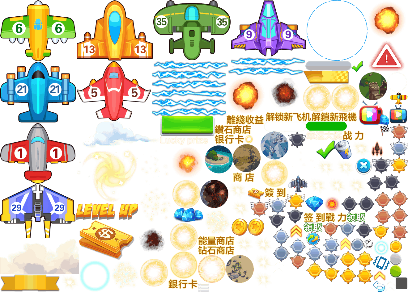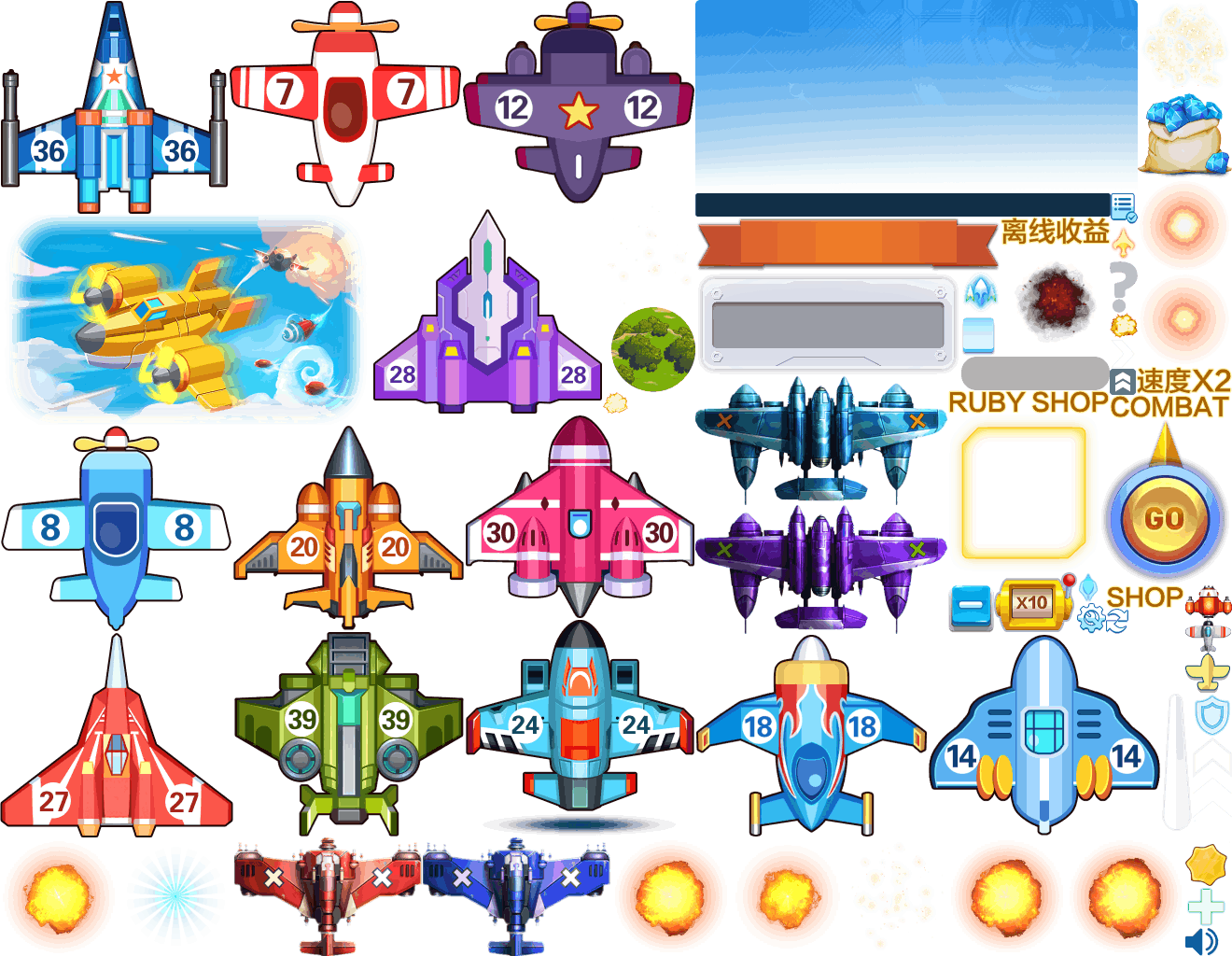 (展示素材已压缩)展示UI为源文件大小的50%(仅展示部分)!整包素材,包含音乐音效等素材~飞机合成游戏