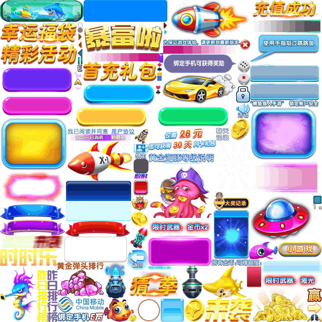 (展示素材已压缩)展示UI为源文件大小的50%(仅展示部分)!整包素材,包含音乐音效等素材~