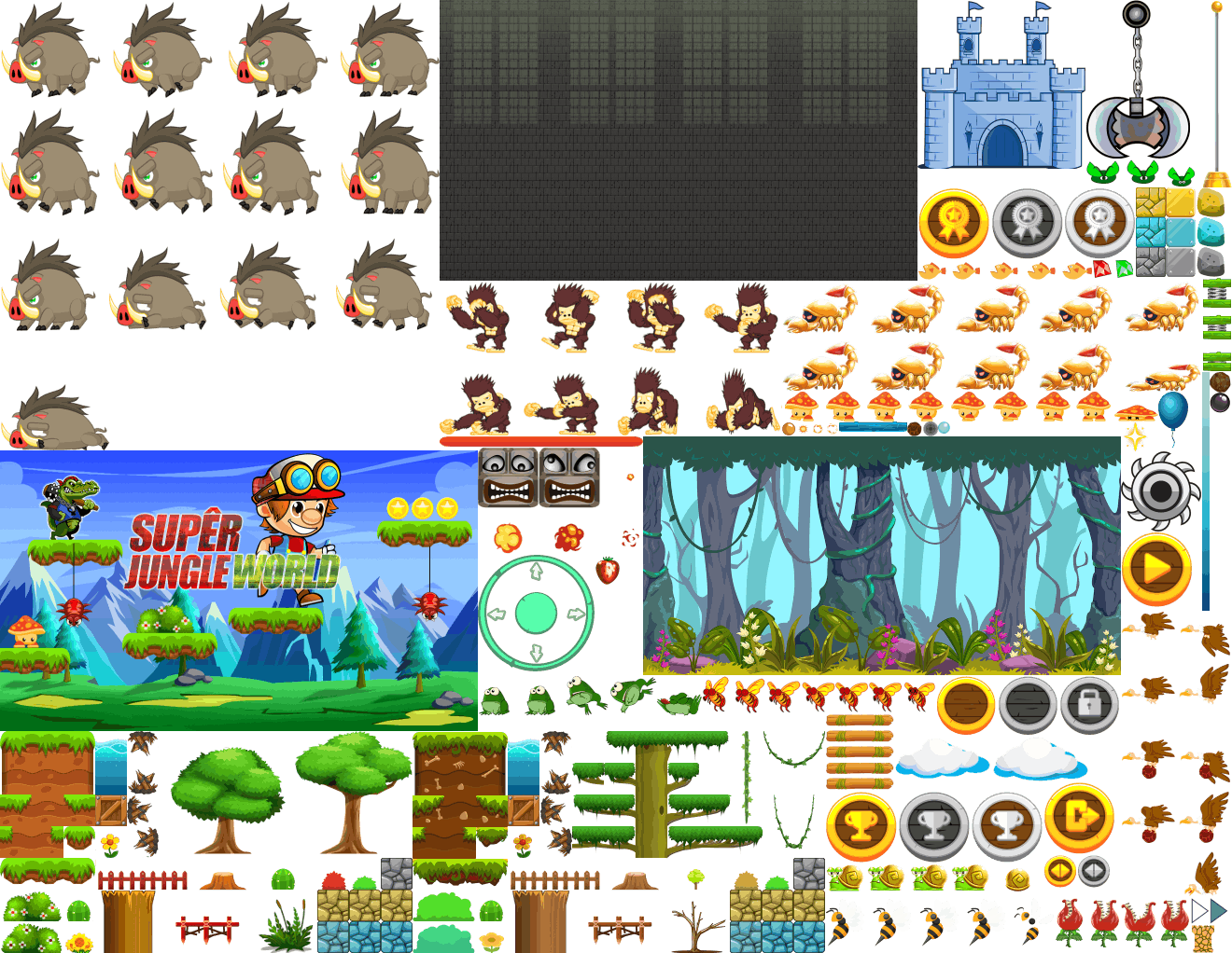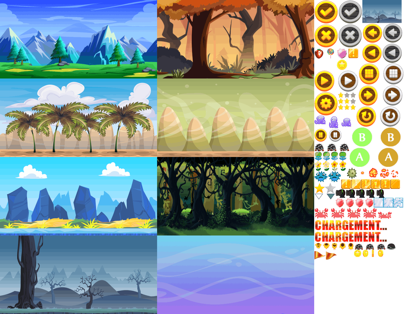 (展示素材已压缩)展示UI为源文件大小的50%(仅展示部分)!整包素材,包含音乐音效等素材~冒险类闯关类游戏 包含瓦片图
