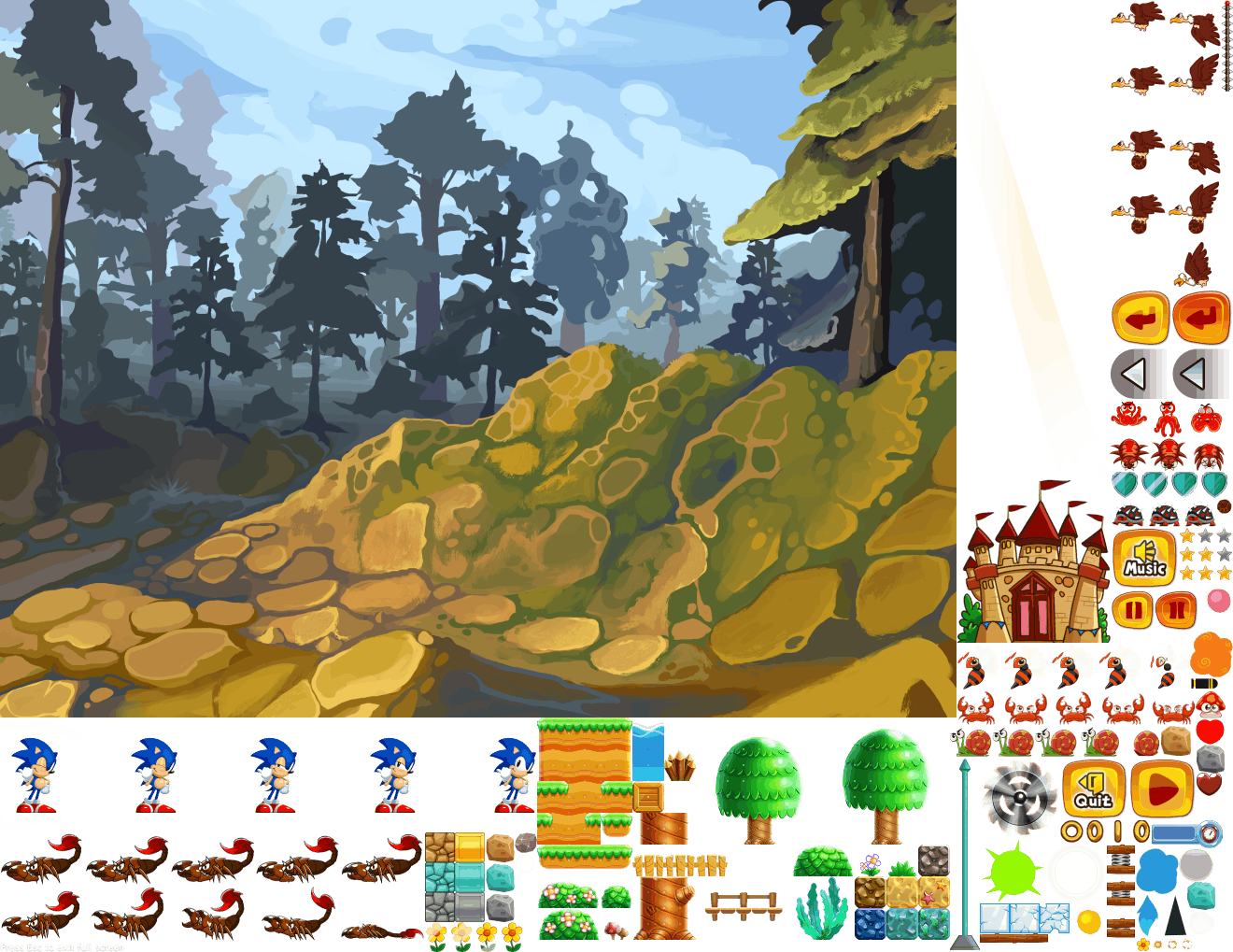 (展示素材已压缩)展示UI为源文件大小的50%(仅展示部分)!整包素材,包含音乐音效等素材~ 索尼克游戏素材
