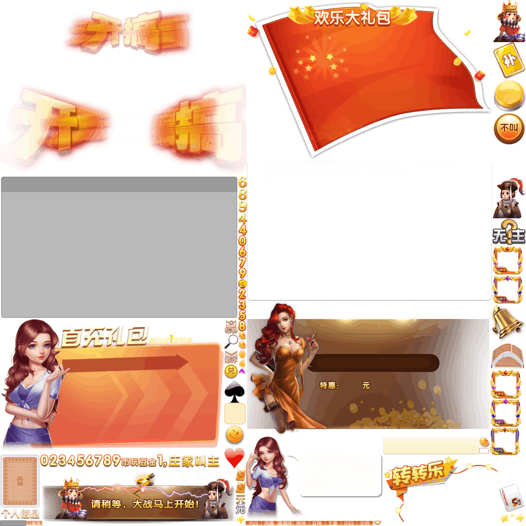 (展示素材已压缩)展示UI为源文件大小的50%(仅展示部分)!整包素材,包含音乐音效等素材~