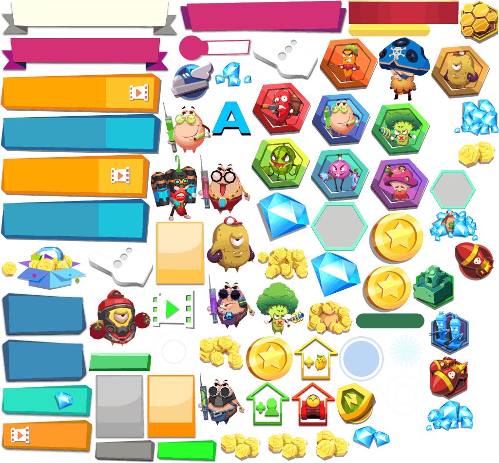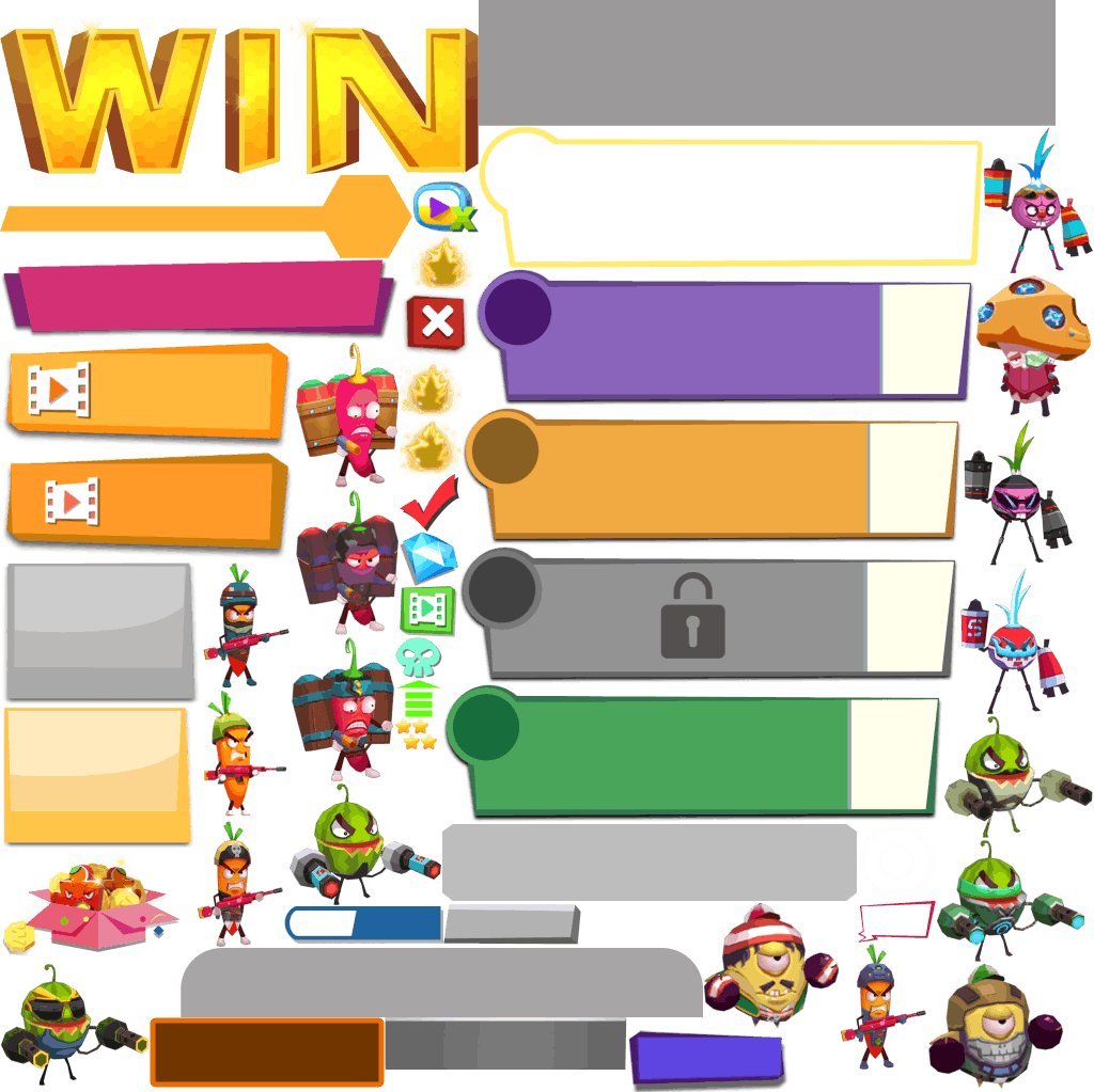 展示UI为源文件大小的50%!水果大战UI素材,包含音效音乐文件!