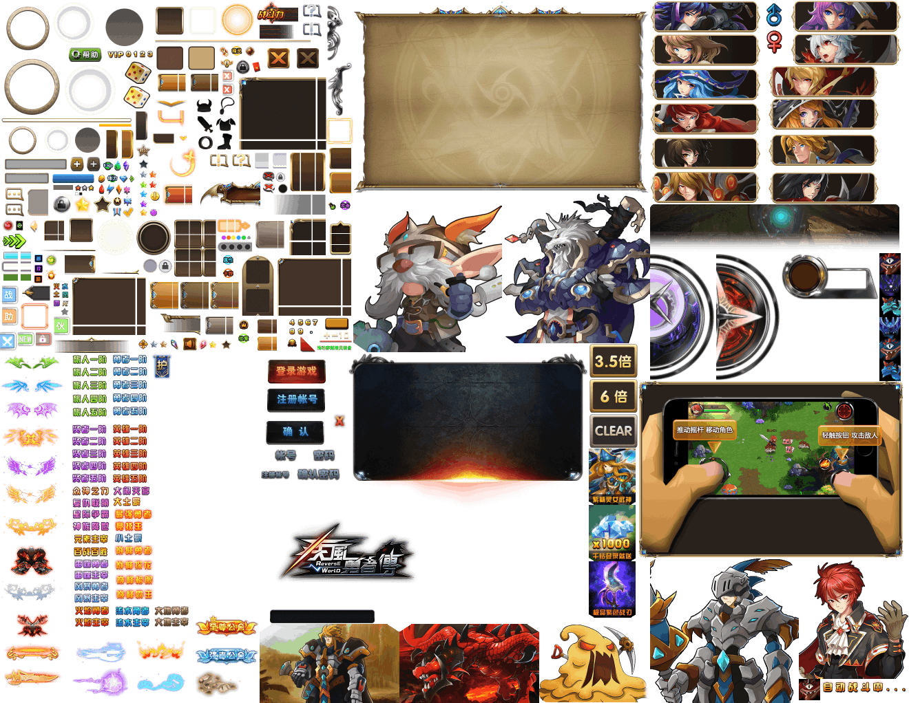 (展示素材已压缩)展示UI为源文件大小的50%(仅展示部分)!整包素材,包含音乐音效等素材~疾风勇者传