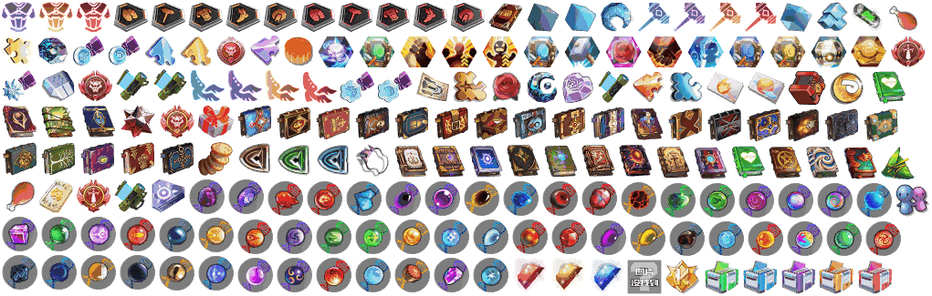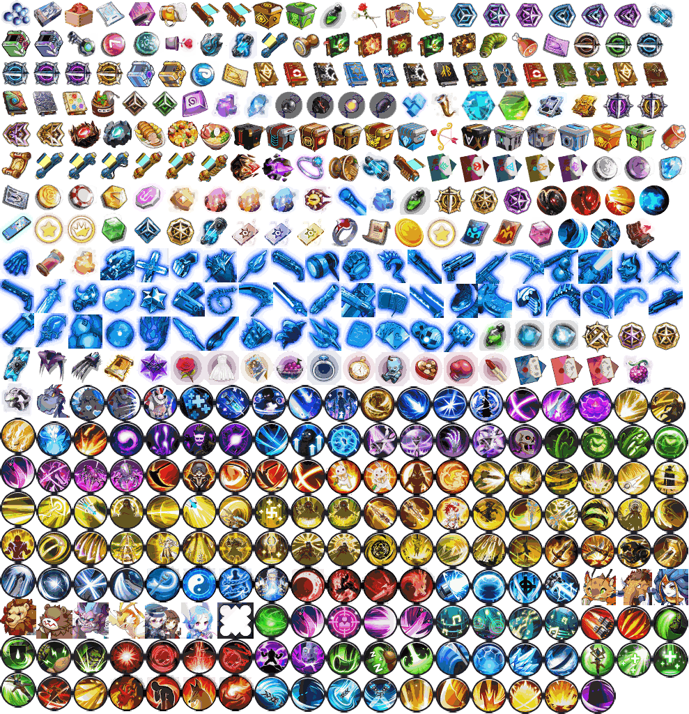 游戏技能图标武器宝箱等等~ 显示为原图片大小的50%。