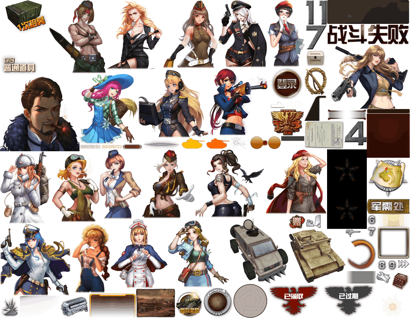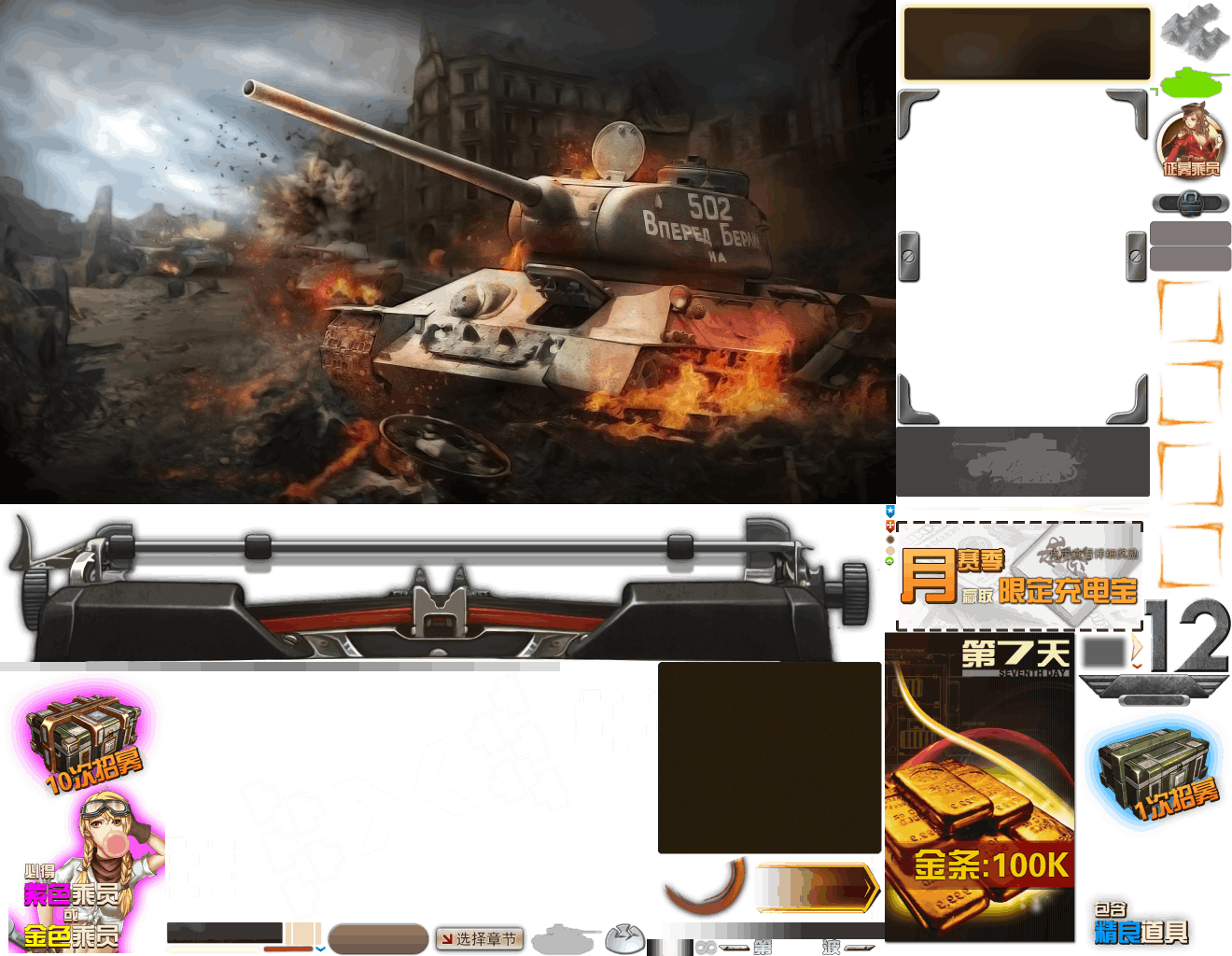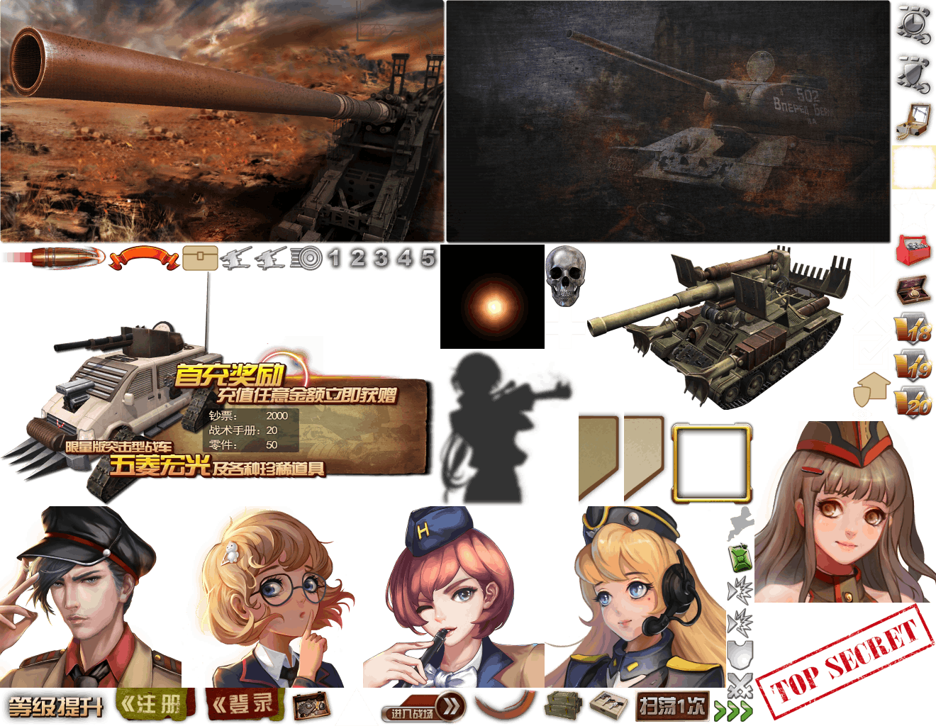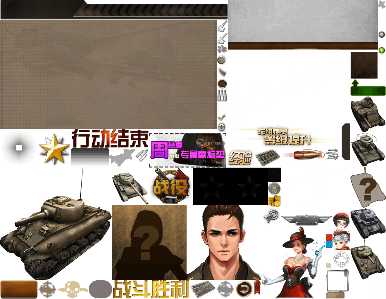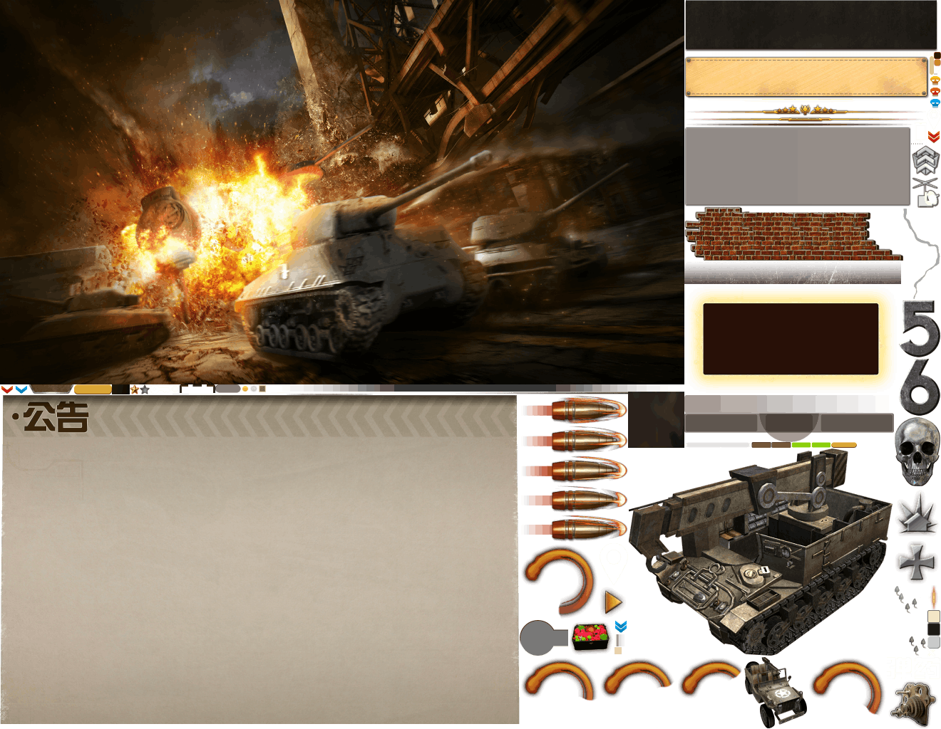 (展示素材已压缩)展示UI为源文件大小的50%(仅展示部分)!整包素材,包含音乐音效等素材~战争类