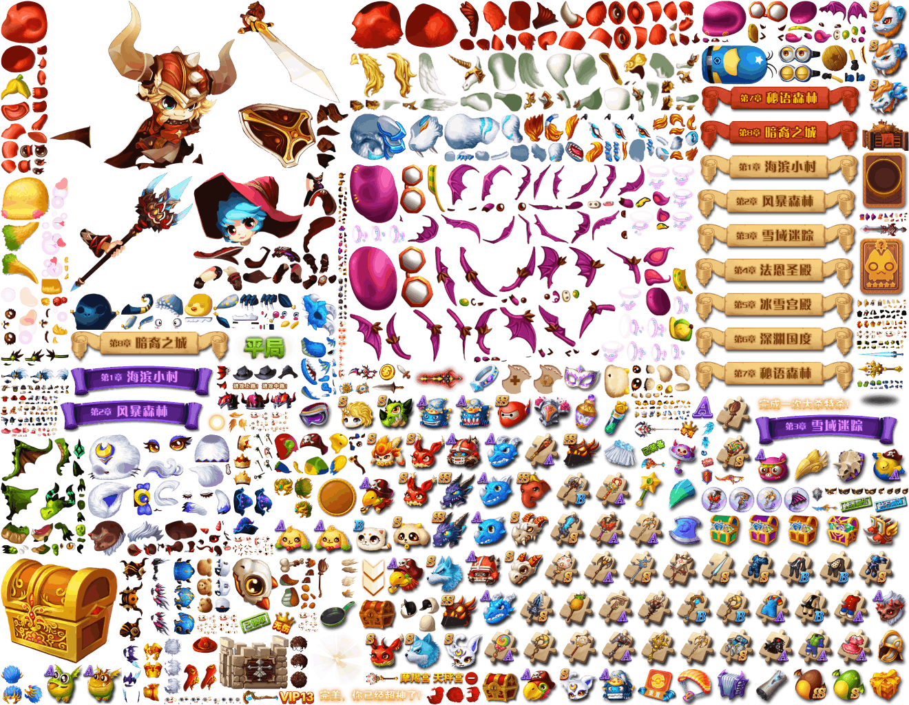 (展示素材已压缩)展示UI为源文件大小的50%(仅展示部分)!整包素材,包含音乐音效等素材~冒险传说素材
