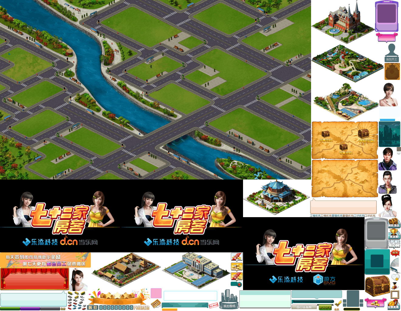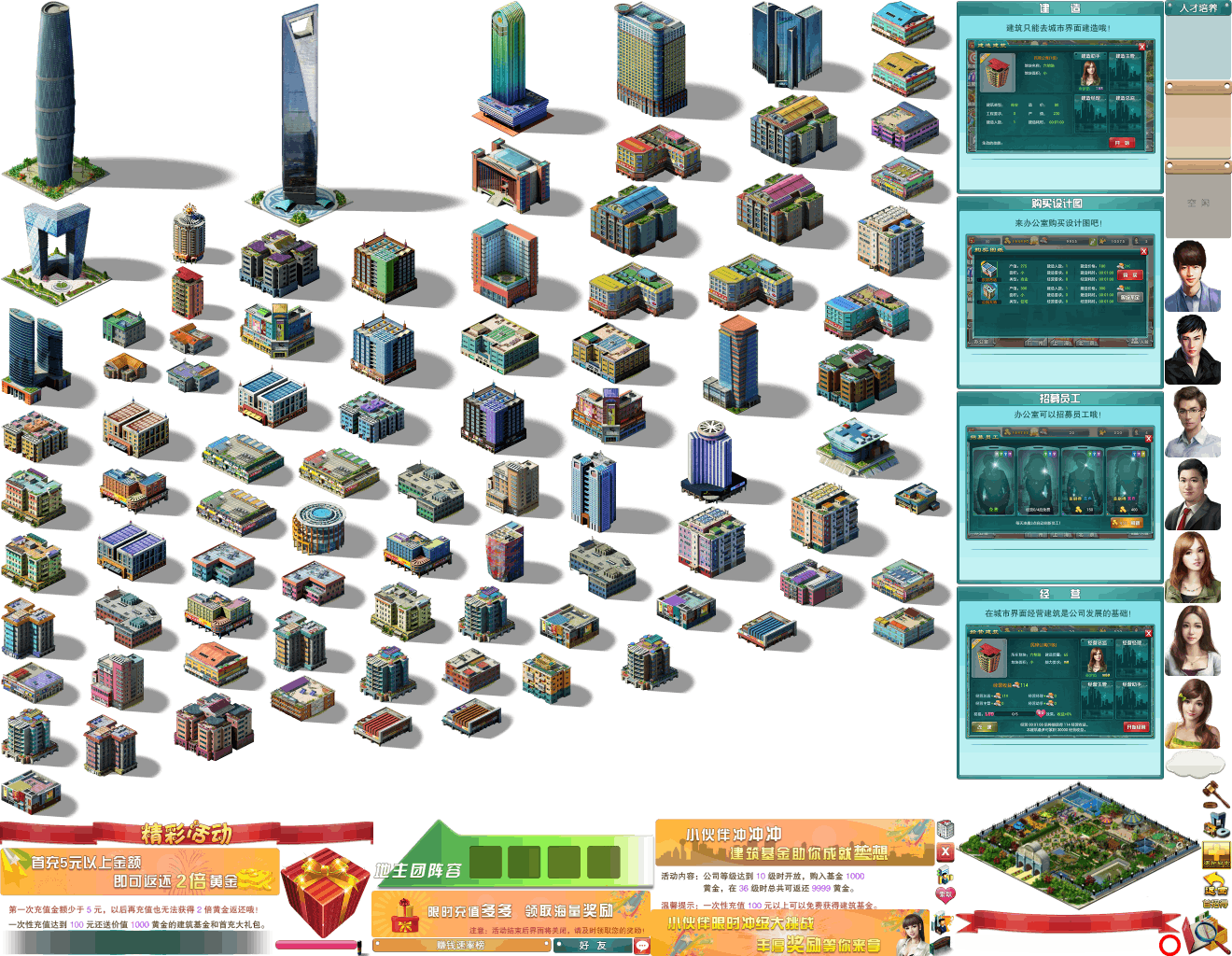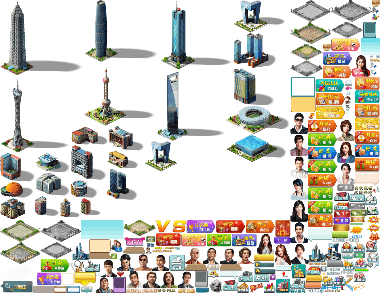 (展示素材已压缩)展示UI为源文件大小的50%(仅展示部分)!整包素材,包含音乐音效等素材~ 城市建造素材