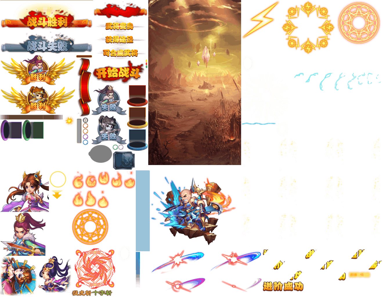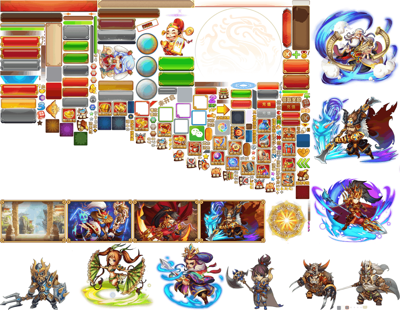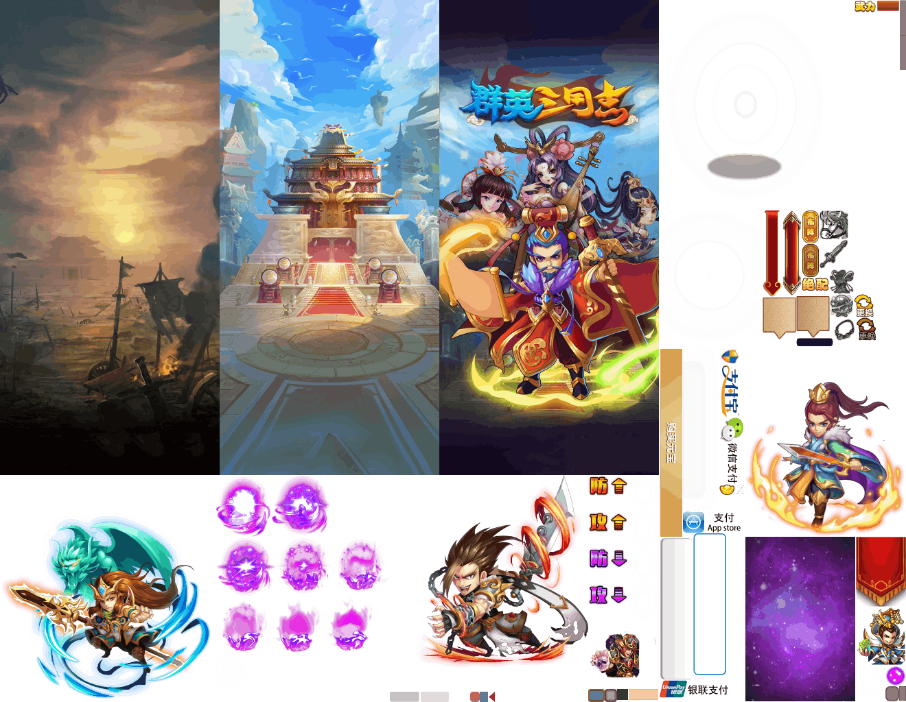 (展示素材已压缩)展示UI为源文件大小的50%(仅展示部分)!整包素材,包含音乐音效等素材~群英三国志素材