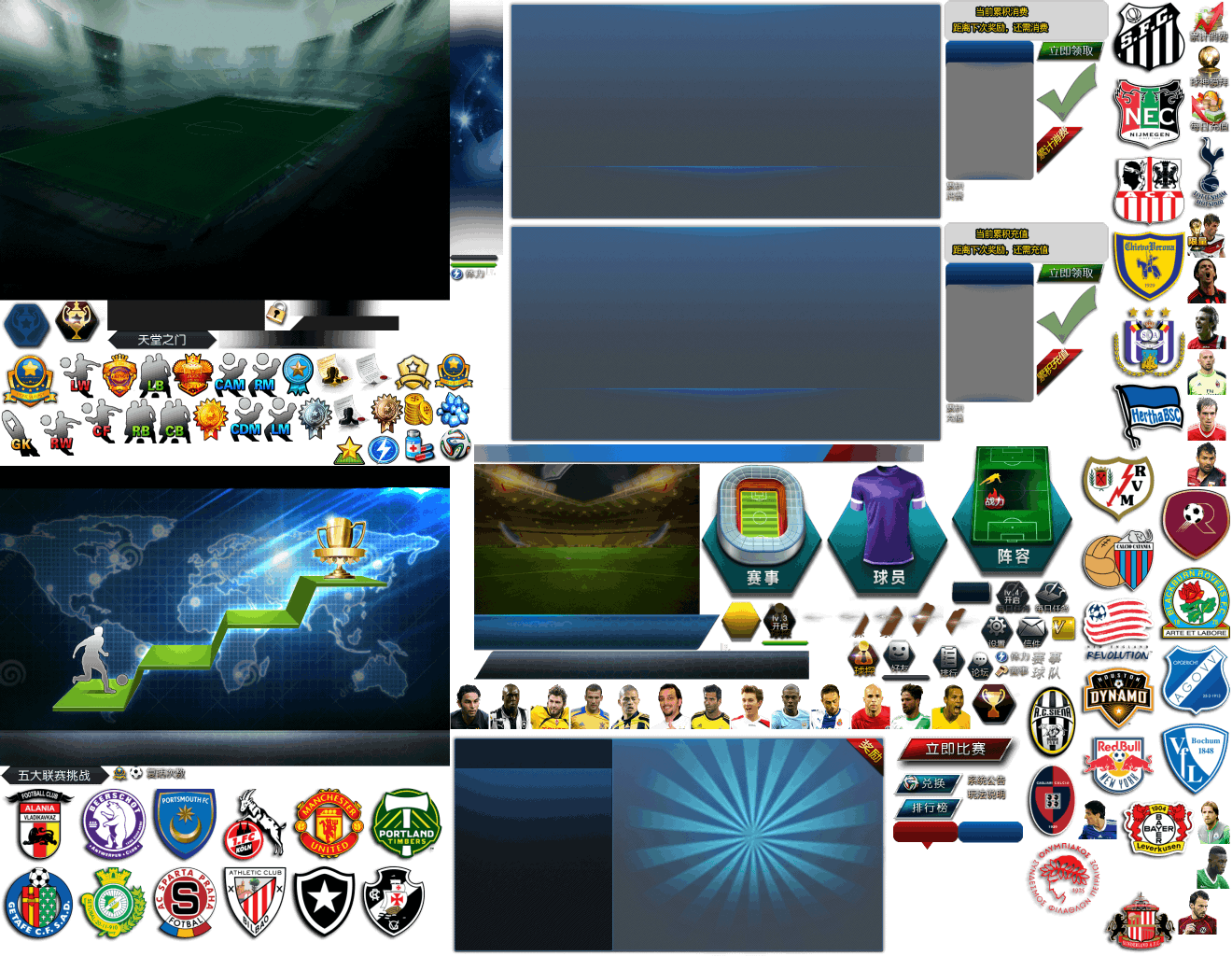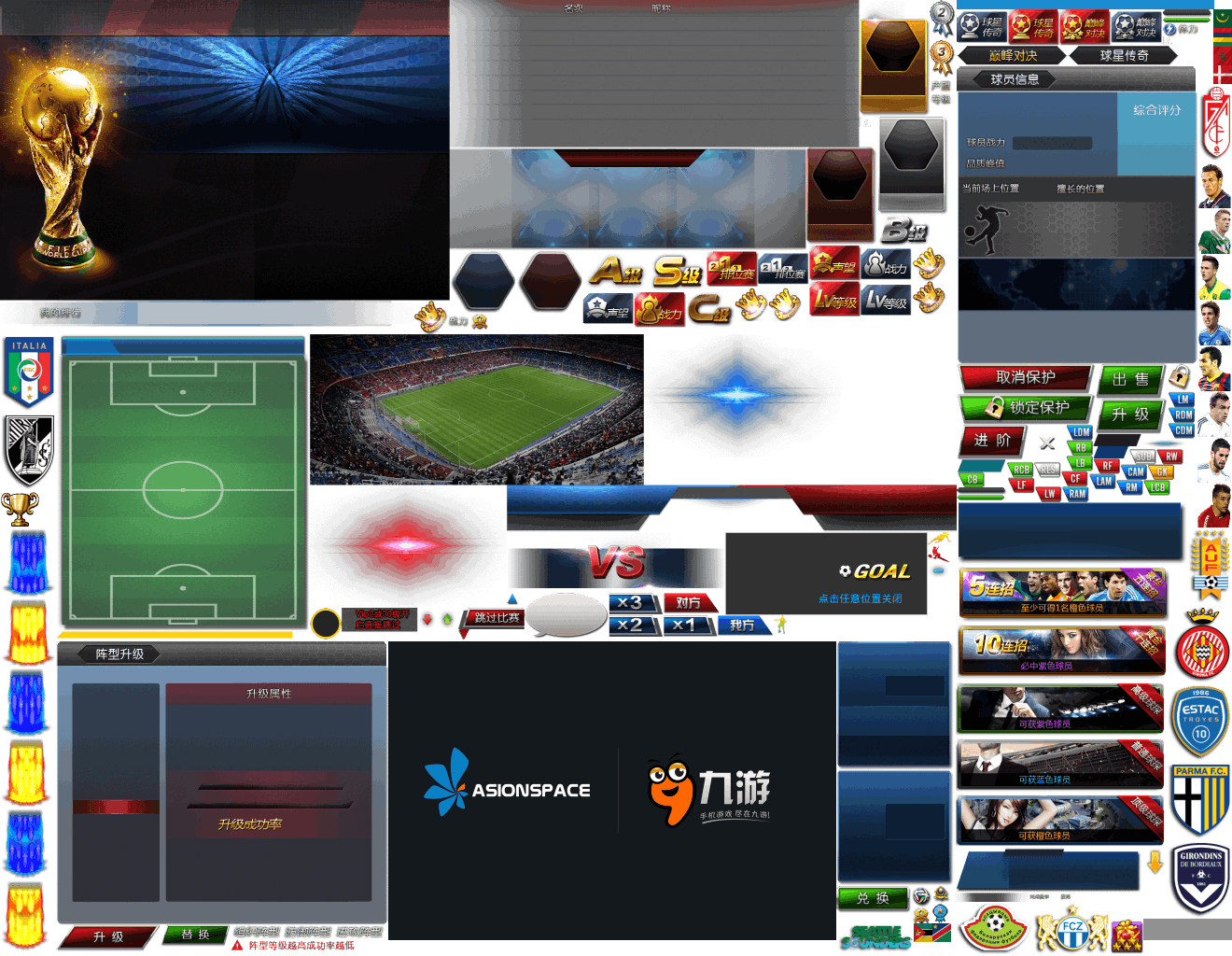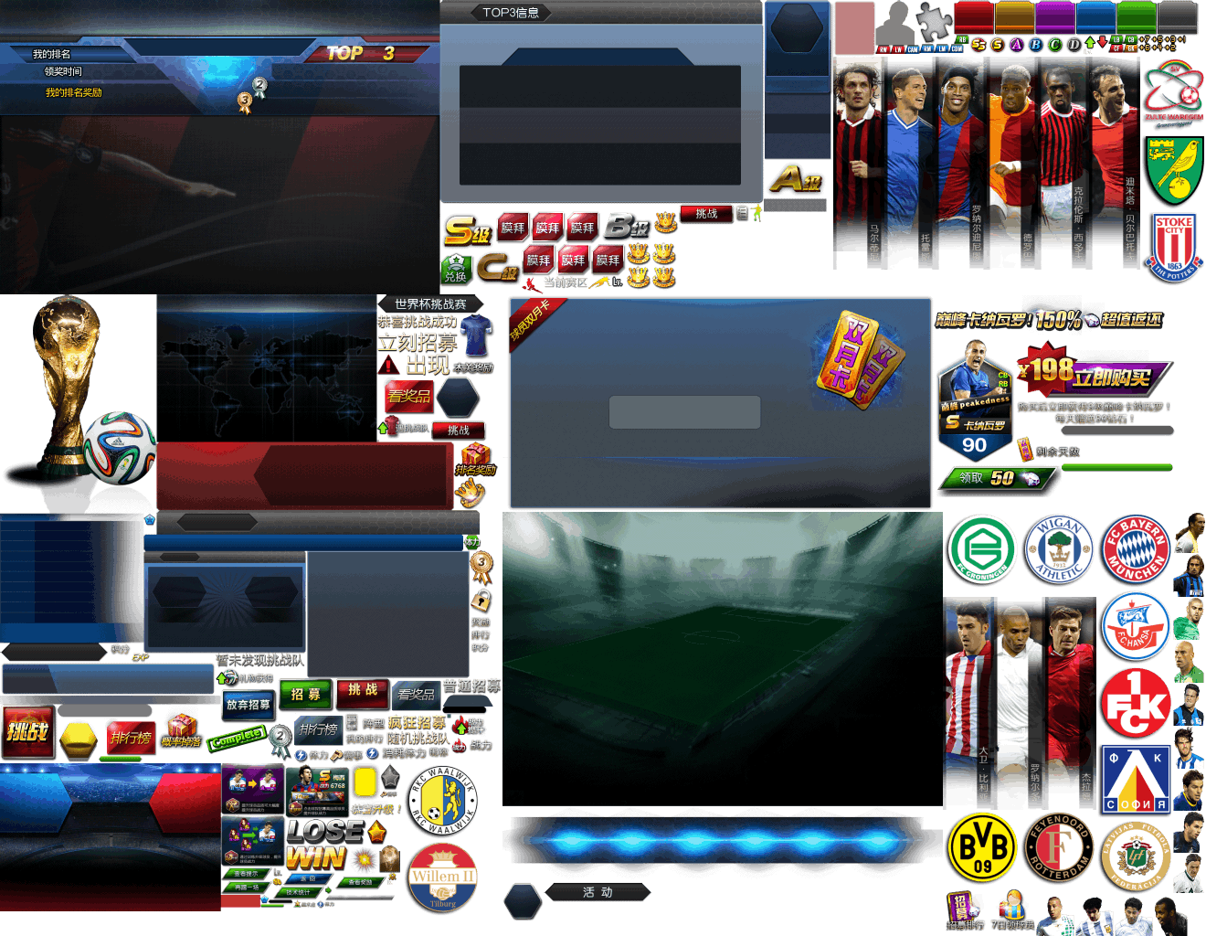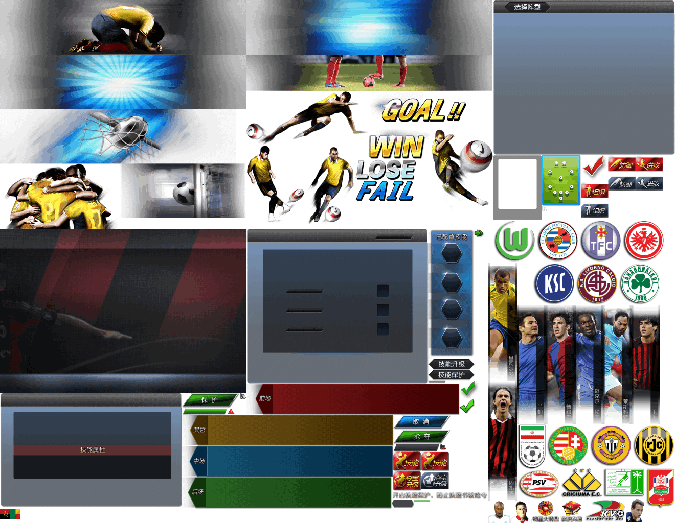 (展示素材已压缩)展示UI为源文件大小的50%(仅展示部分)!整包素材,包含音乐音效等素材~足球游戏素材