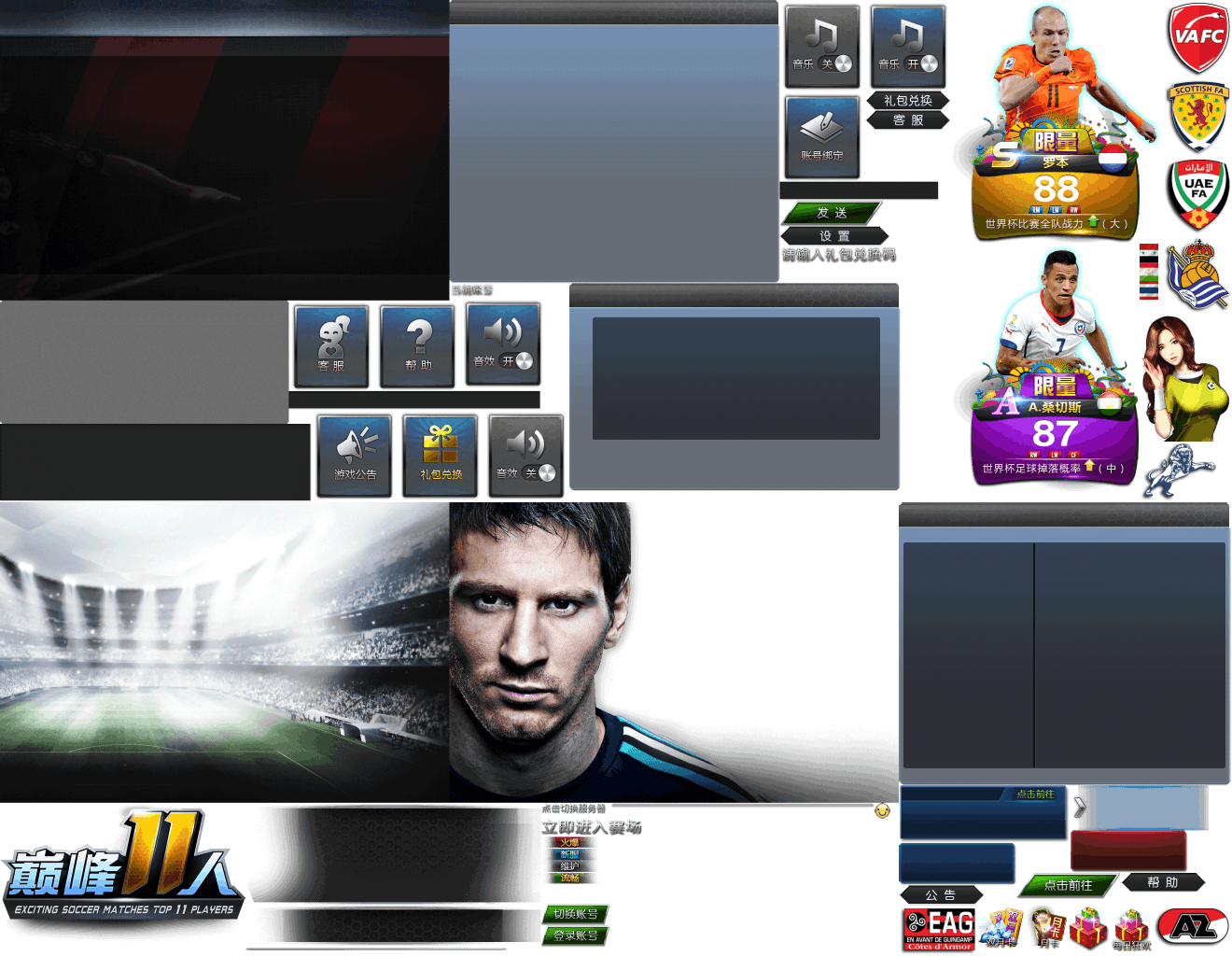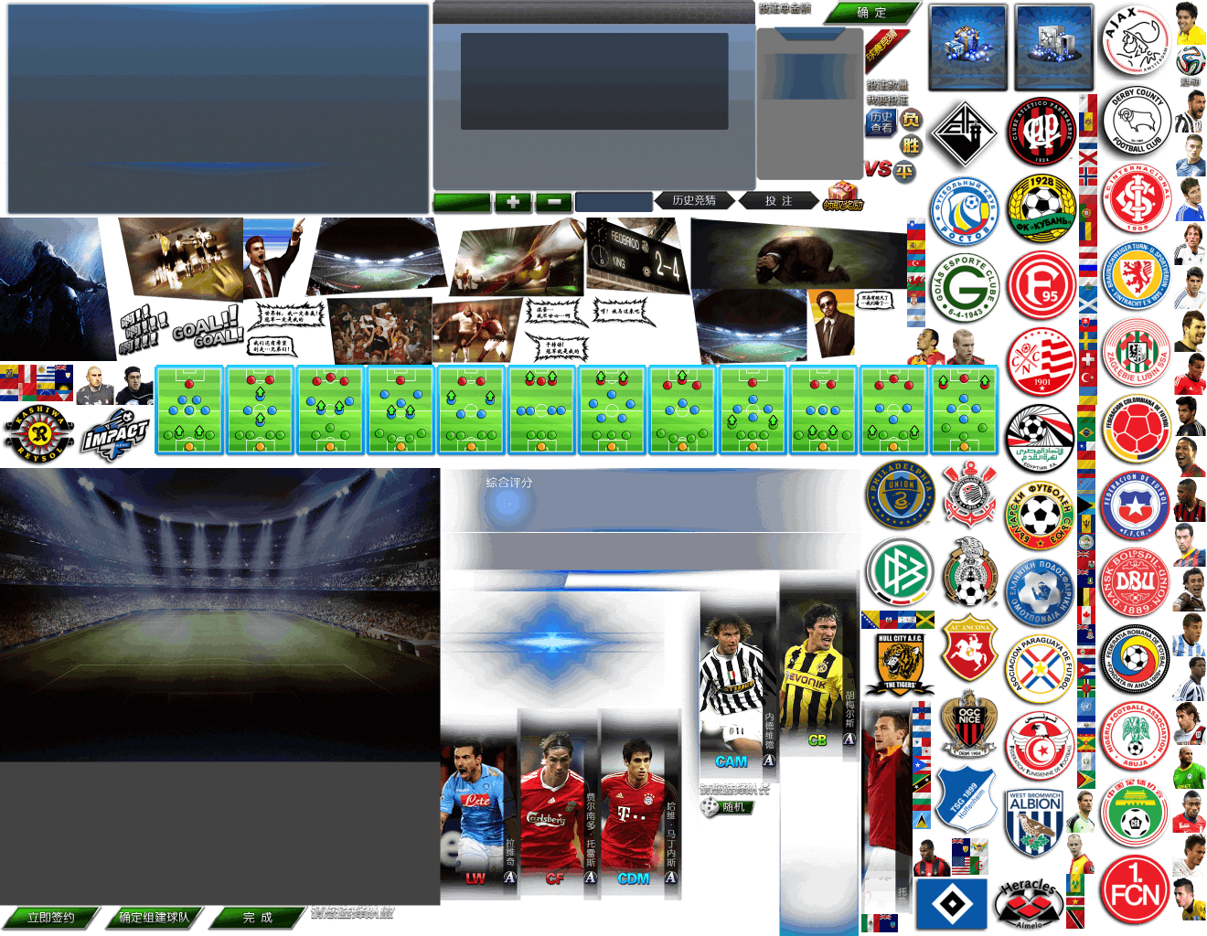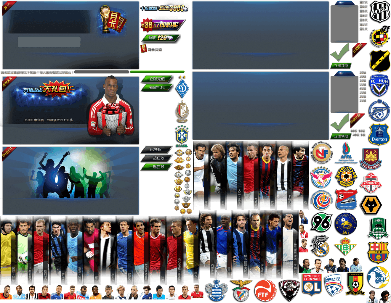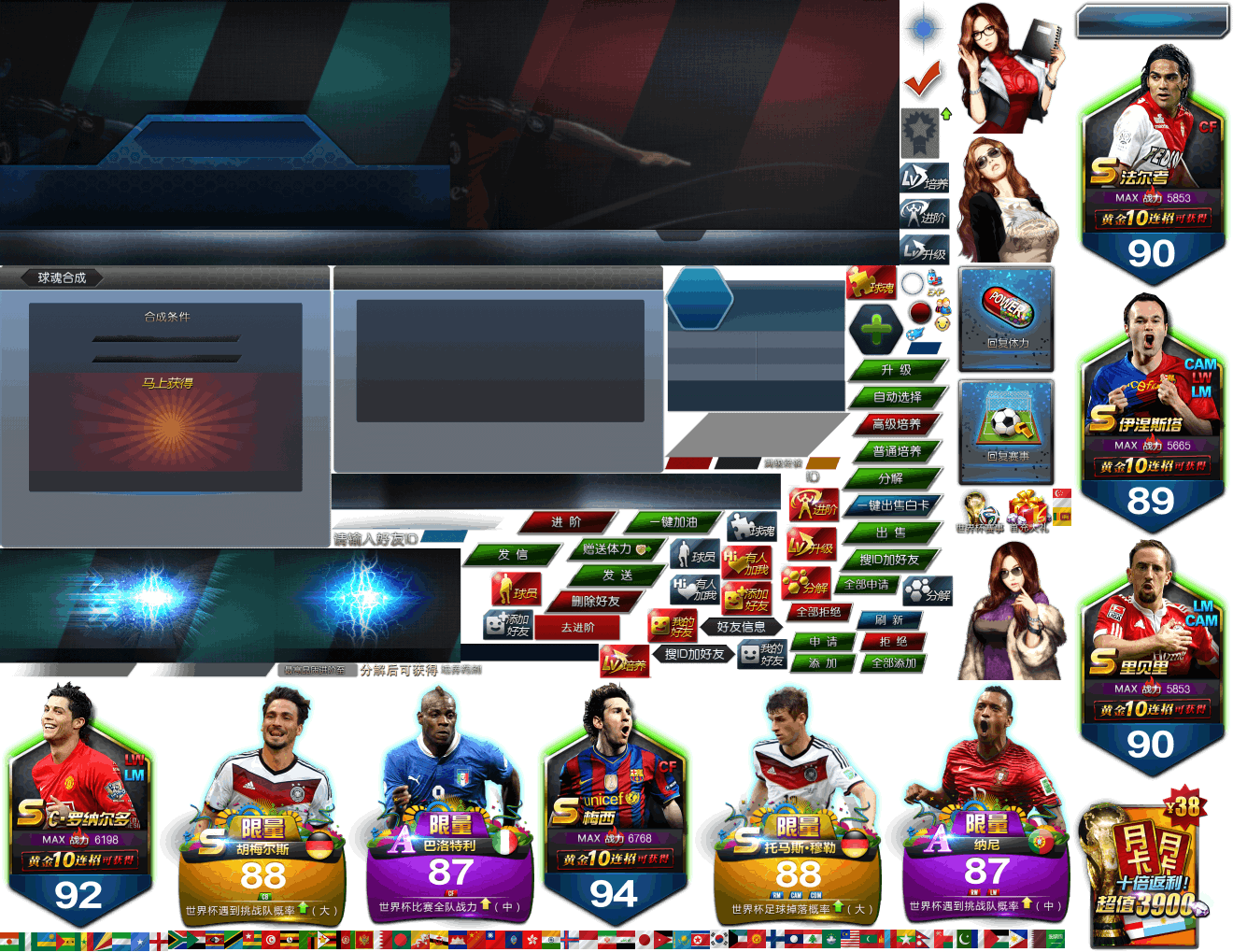 (展示素材已压缩)展示UI为源文件大小的50%(仅展示部分)!整包素材,包含音乐音效等素材~足球游戏素材