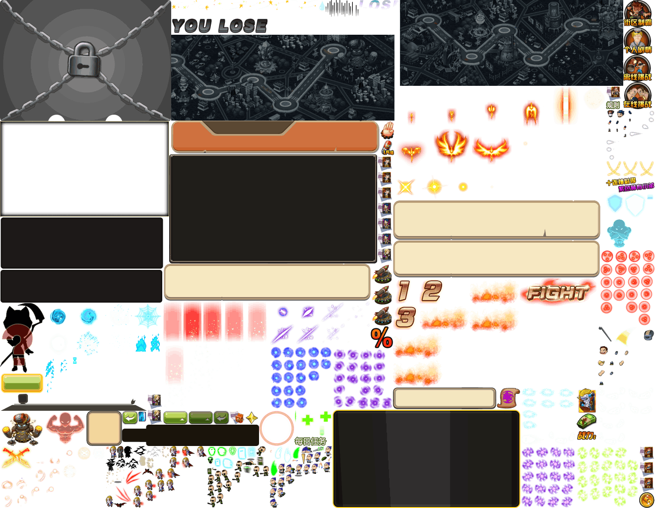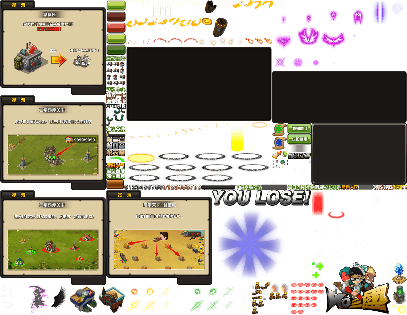 (展示素材已压缩)展示UI为源文件大小的50%(仅展示部分)!整包素材,包含音乐音效等素材~建筑三国素材