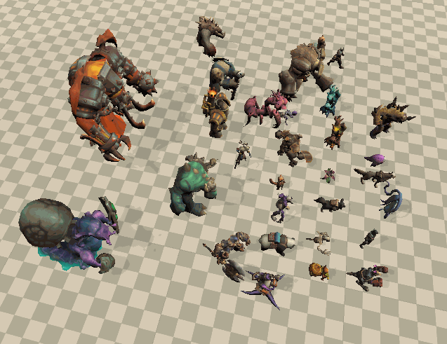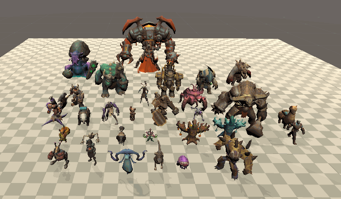 模型展示包含多种人物怪物模型及动作。