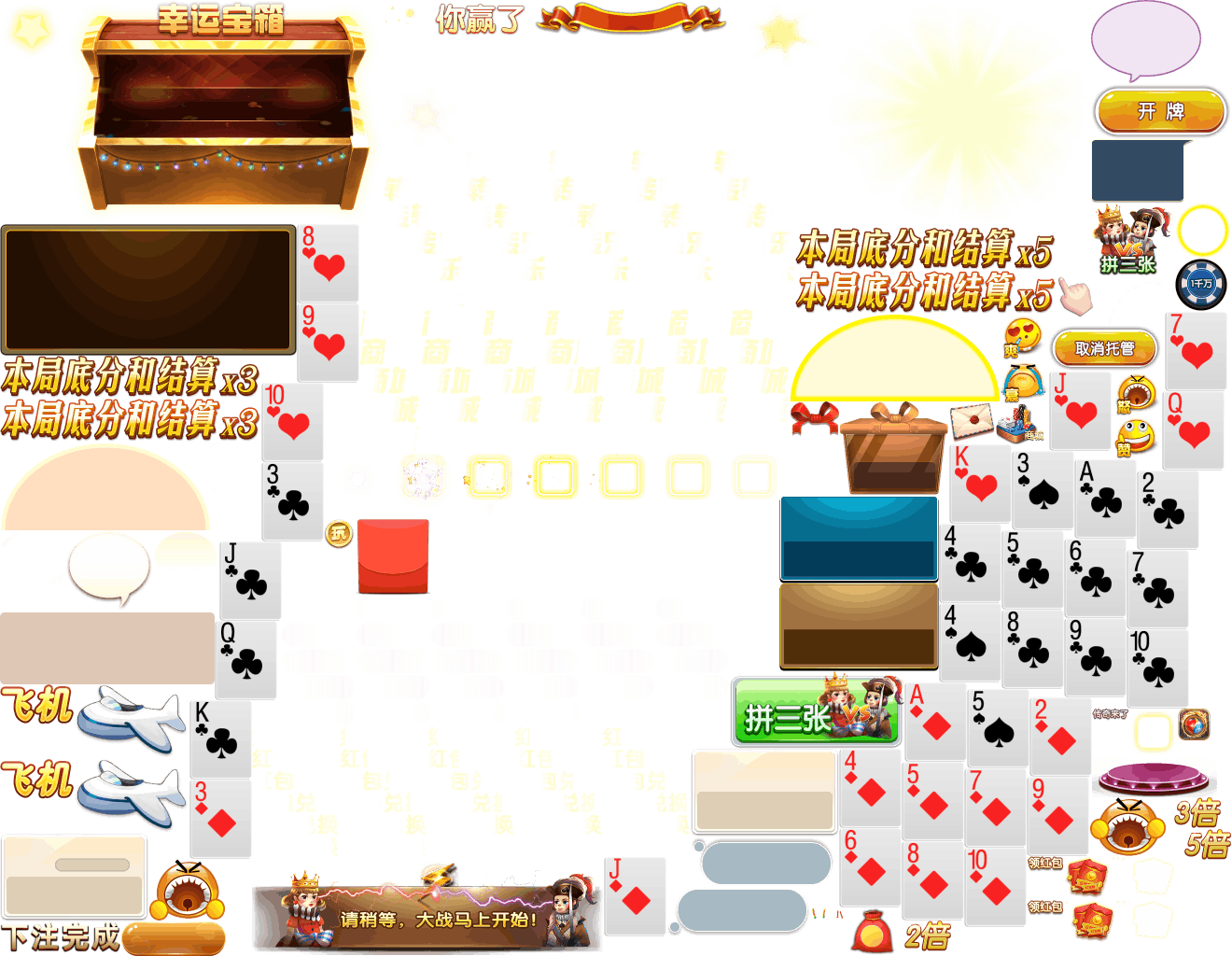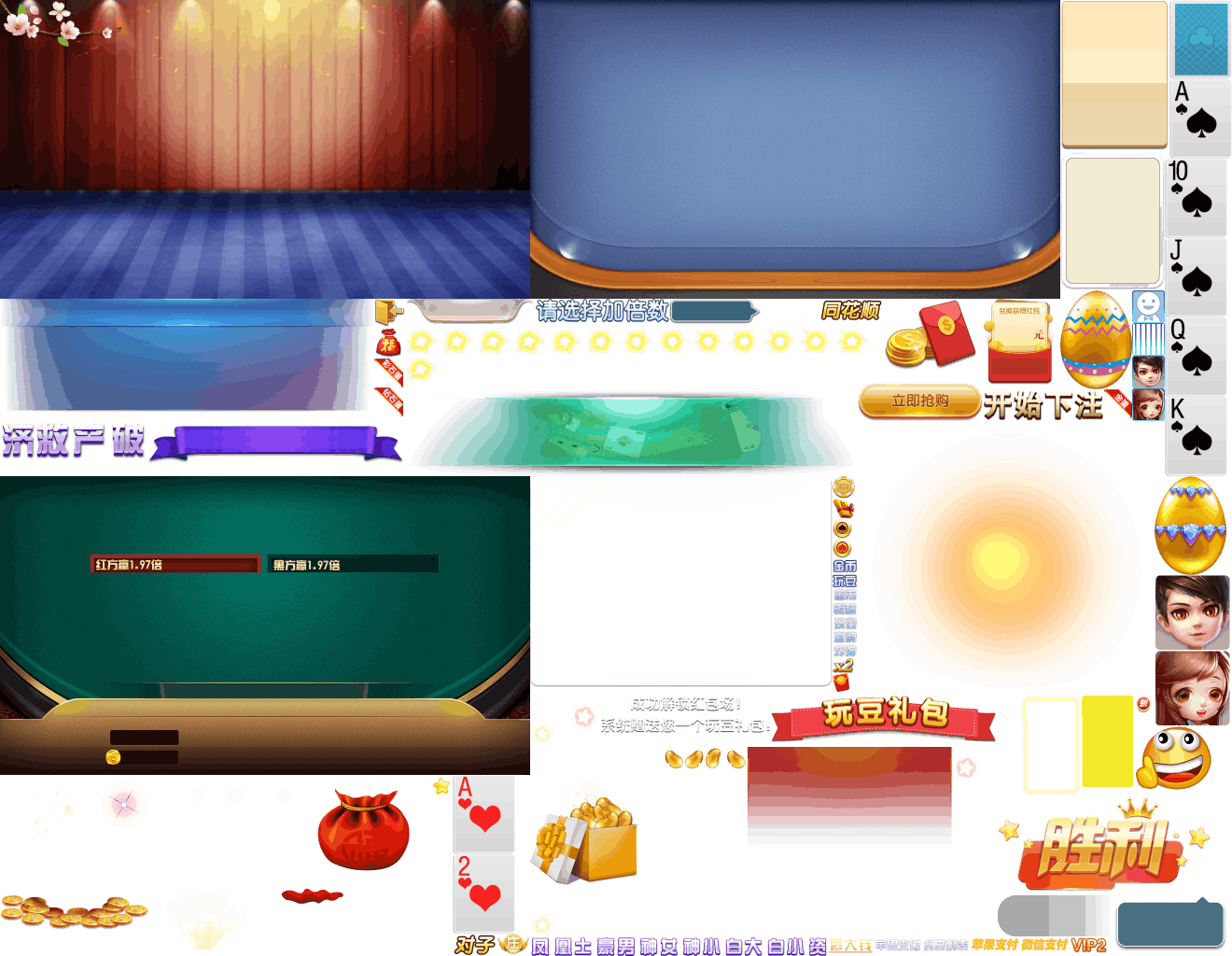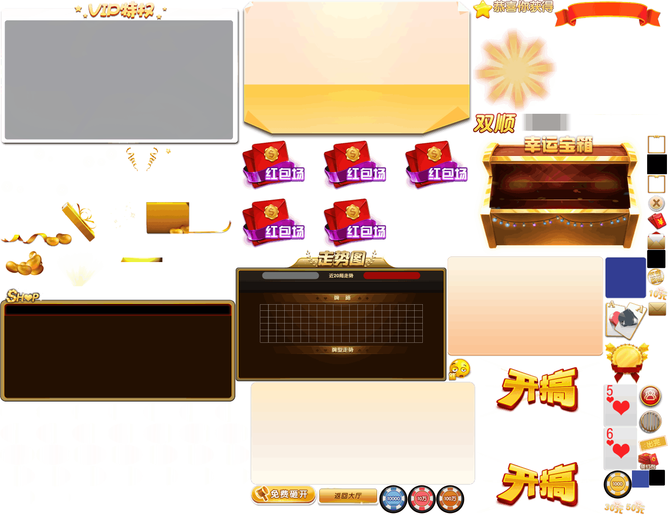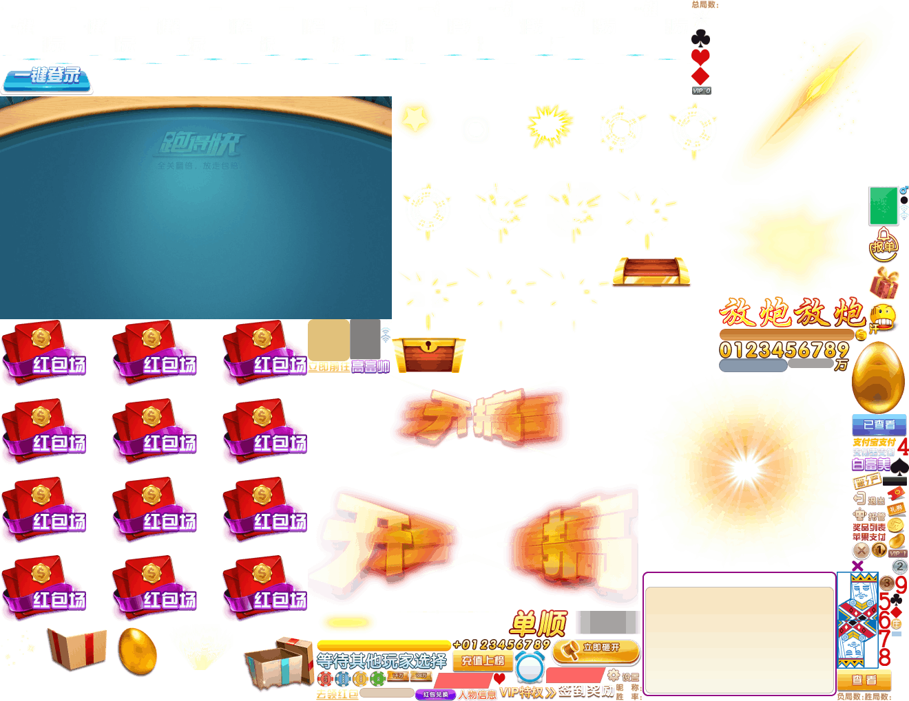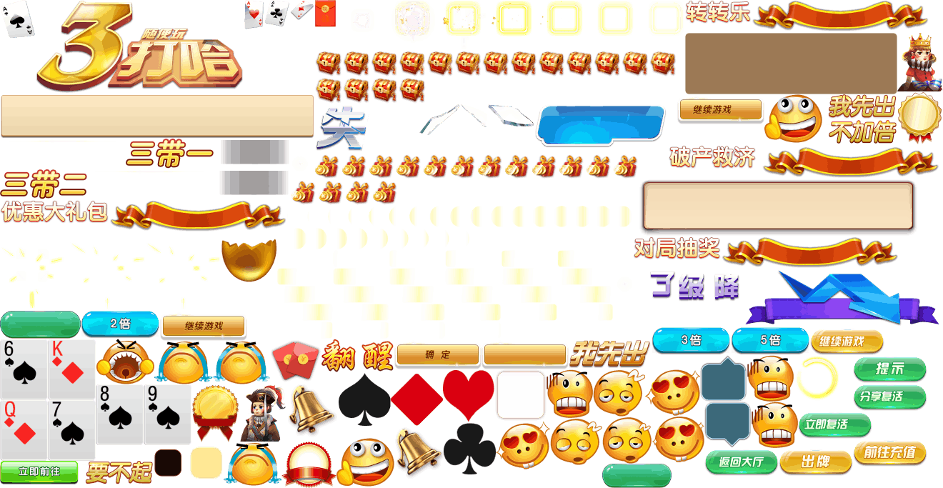 (展示素材已压缩)展示UI为源文件大小的50%(仅展示部分)!整包素材,包含音乐音效等素材~ 跑得快游戏素材