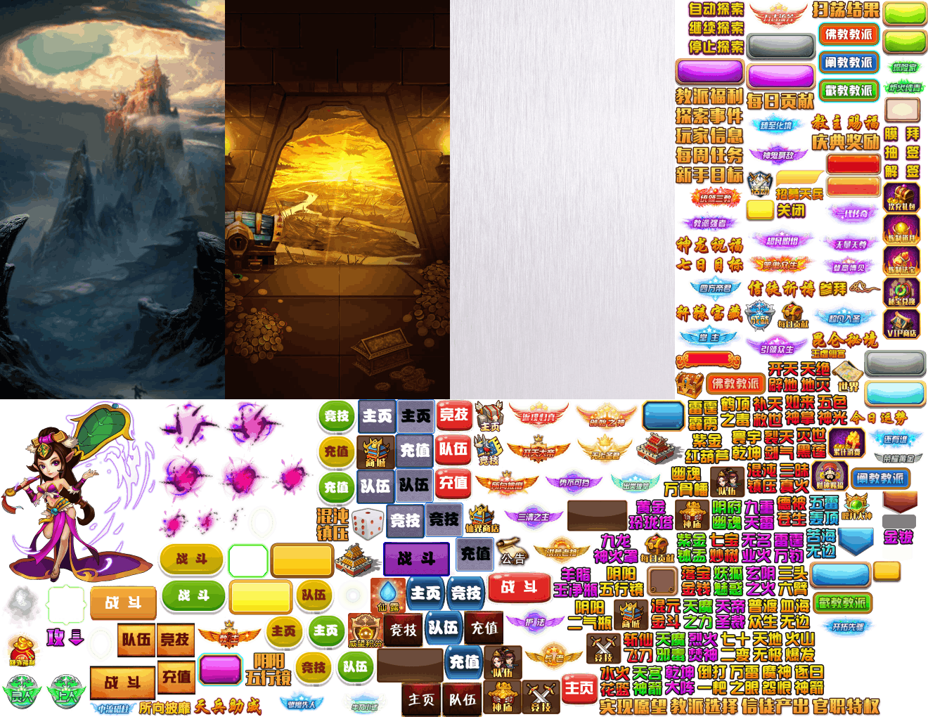 (展示素材已压缩)展示UI为源文件大小的50%(仅展示部分)!整包素材,包含音乐音效等素材~西游记口袋版