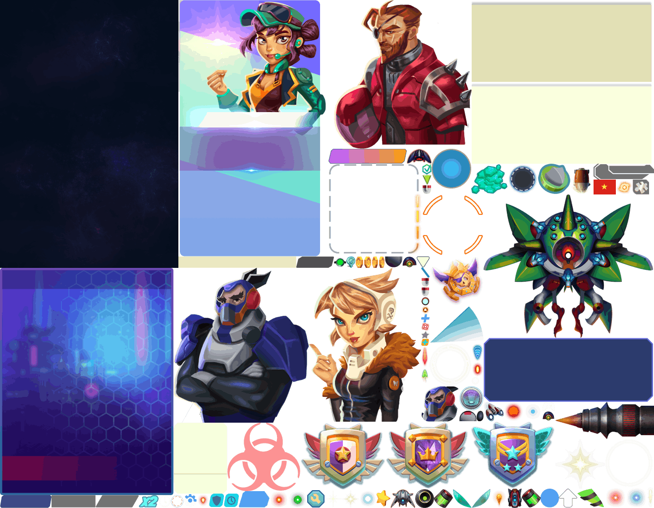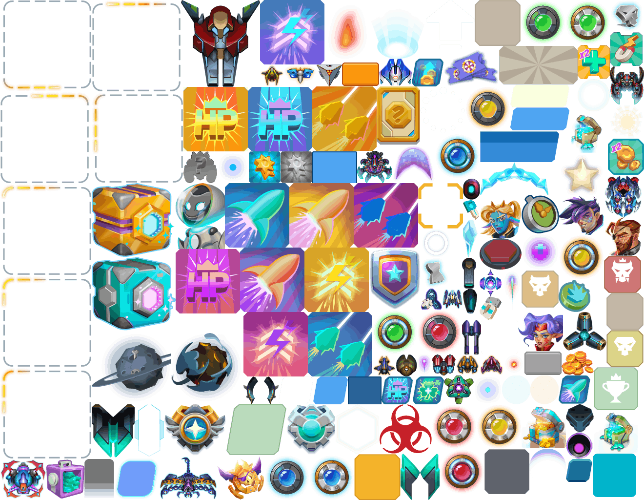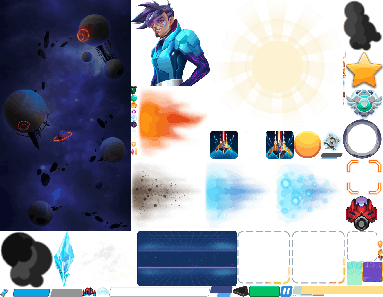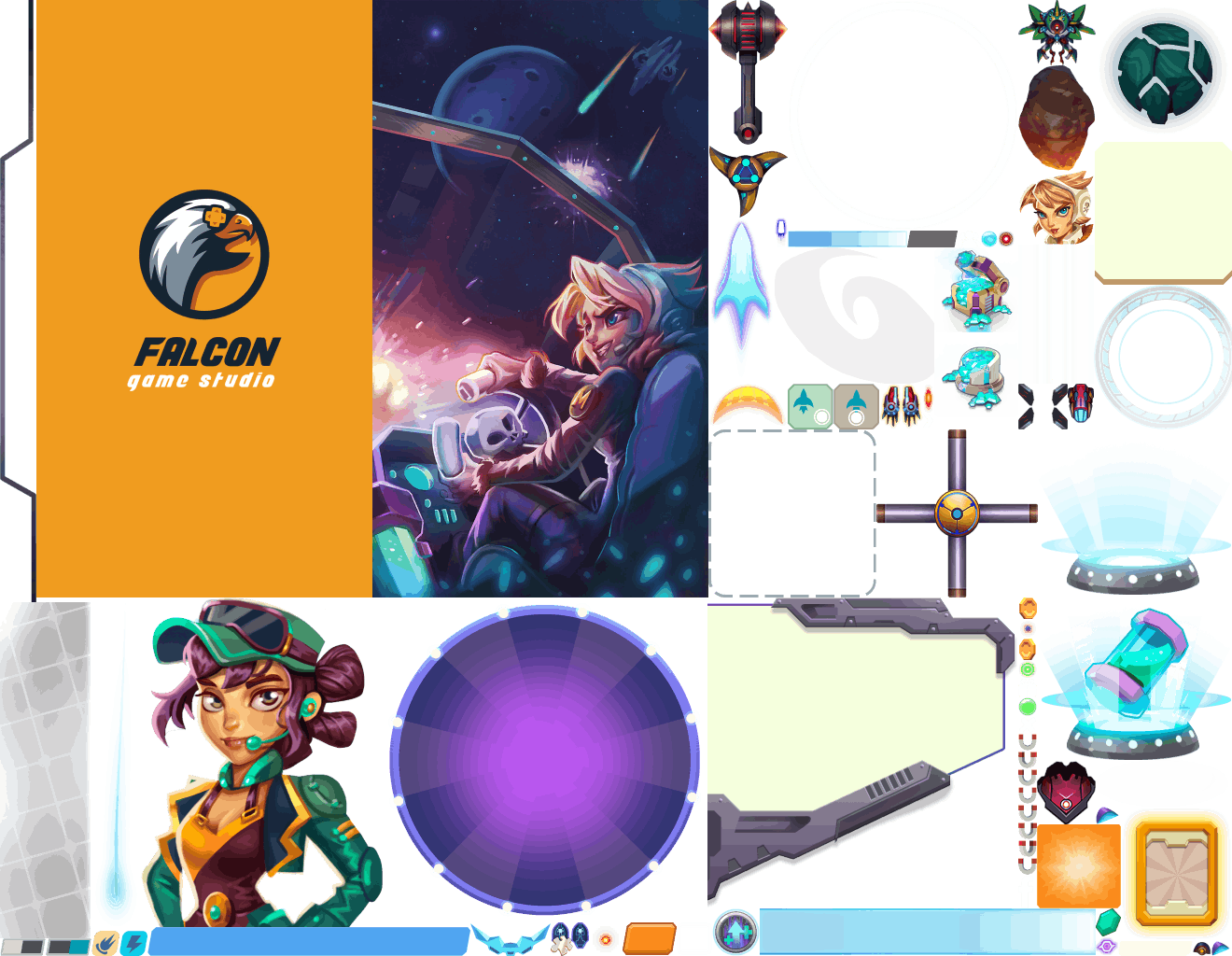 (展示素材已压缩)展示UI为源文件大小的50%(仅展示部分)!整包素材,包含音乐音效等素材~ 飞行射击类